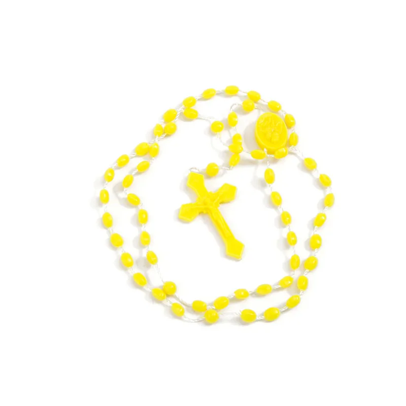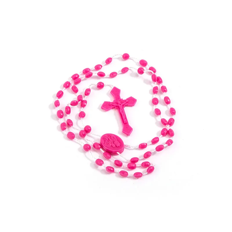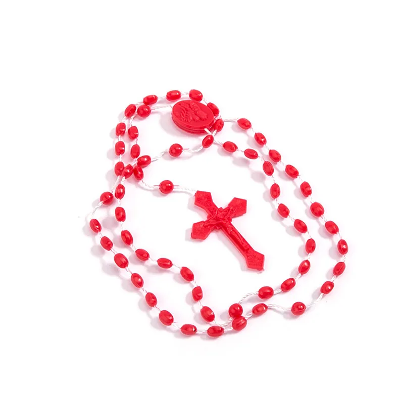 Оптовая продажа, классическое пластиковое плетеное ожерелье из бисера. Сливовый крест имеет много цветов. Дешевые четки ожерелье крест ожерелье