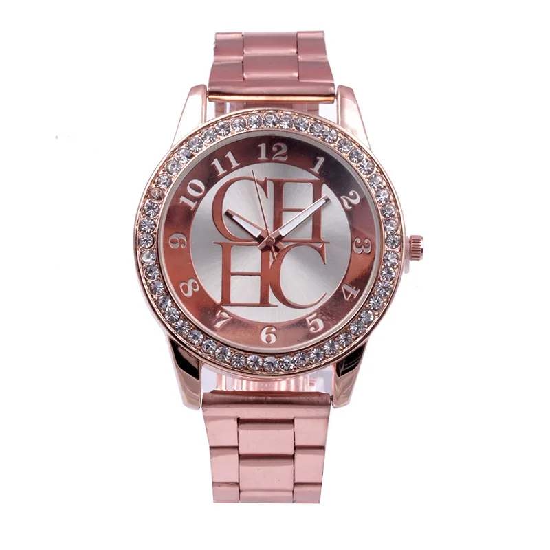 Часы женские кварцевые из нержавеющей стали, с кристаллами