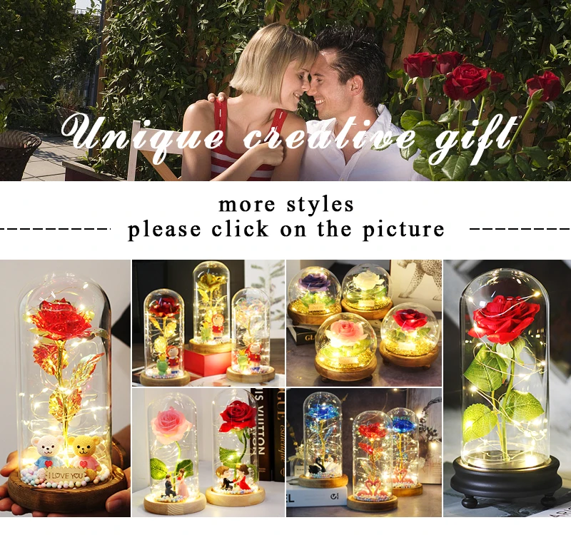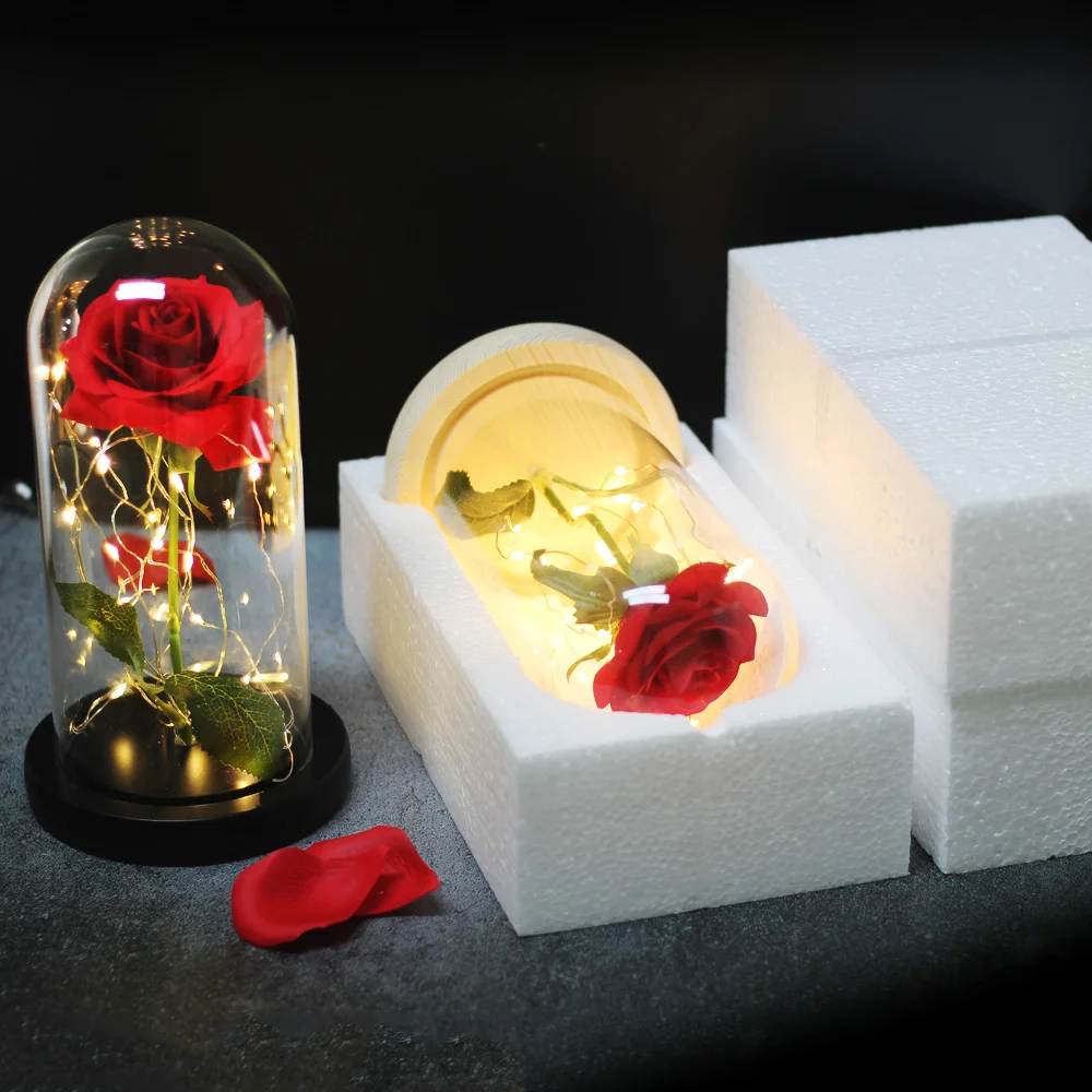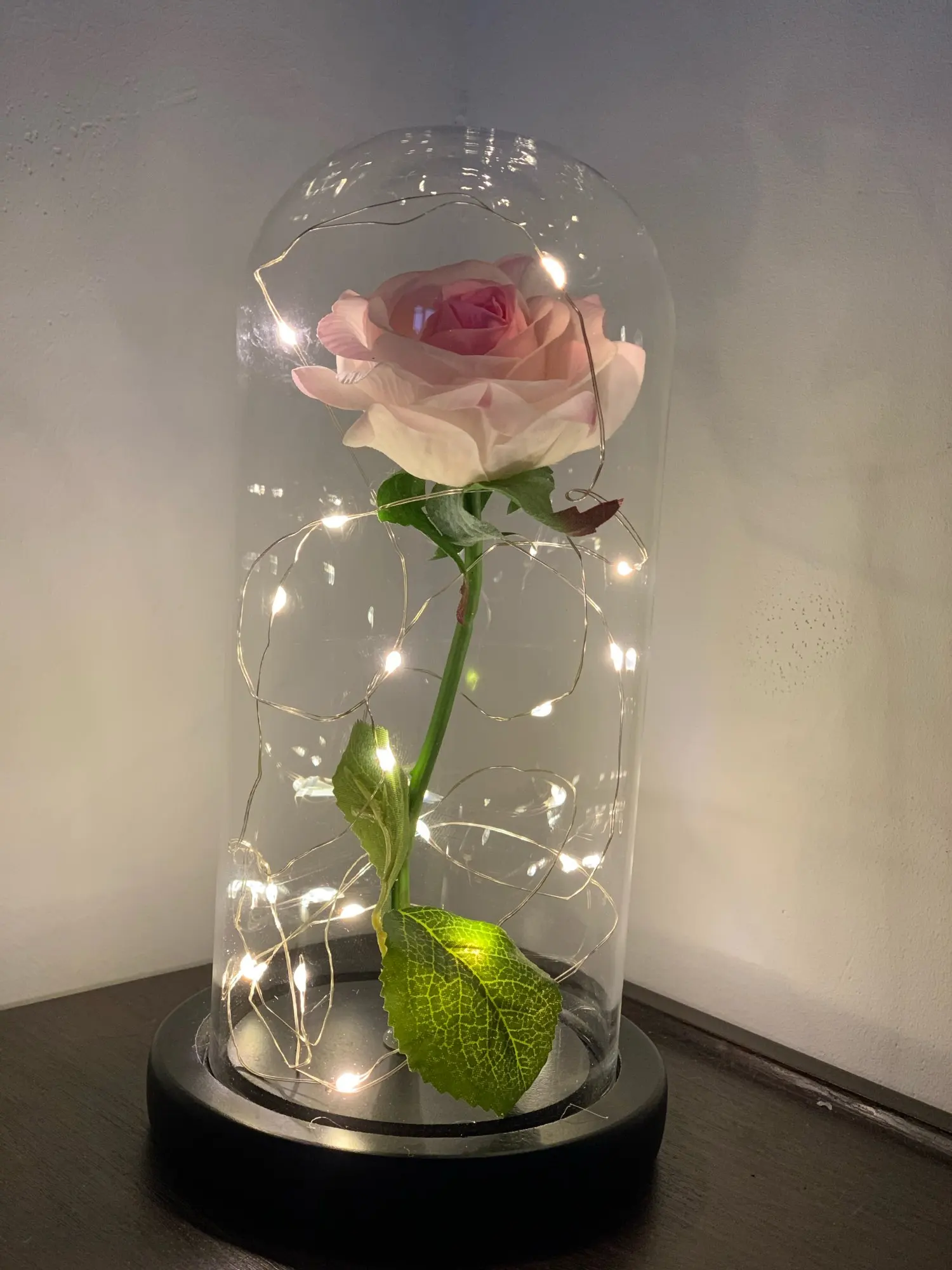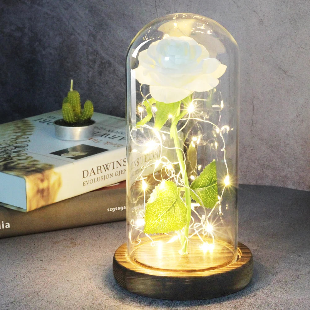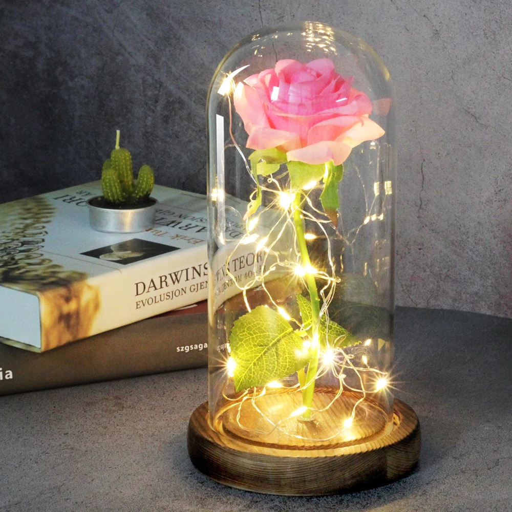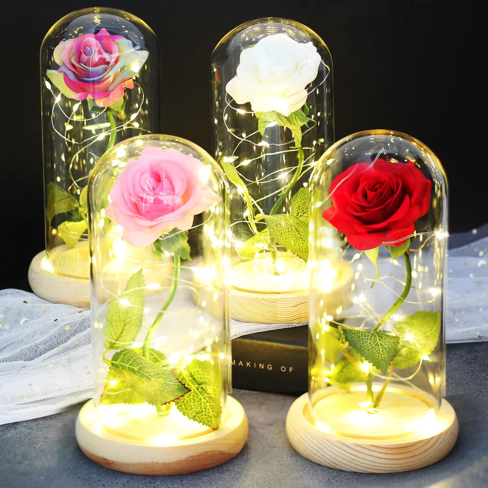 Искусственные цветы Красавица и Чудовище, Роза в светодиодном стеклянном куполе, Рождественское украшение для дома, свадьбы, Дня Святого Валентина, подарок матери