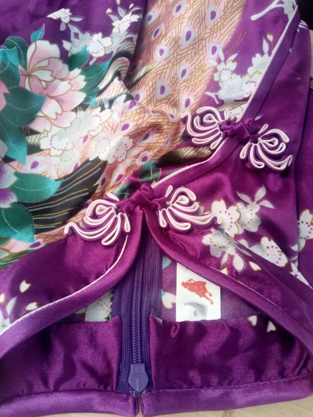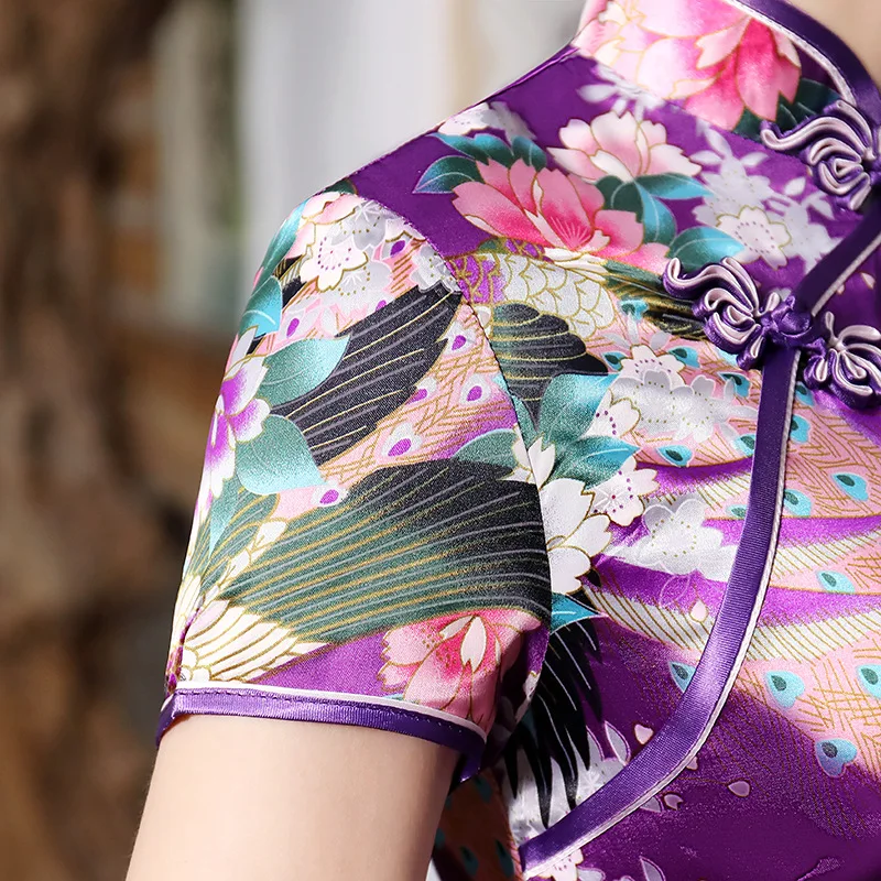 Сексуальное Фиолетовое Женское атласное Повседневное платье, новое Летнее Длинное Ципао с цветочным принтом, китайское Ципао, Размеры S M L XL XXL 3XL 0162