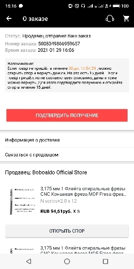 Добрый день, к сожалению продавец отправил не то, что было в заказе. Заказ был на фрезы 3,175х17 , а пришли 3,175х15 Будем думать , как использовать. Соответственно и коробка другая, не та что на фото продавца и у других пользователей в отзывах.
