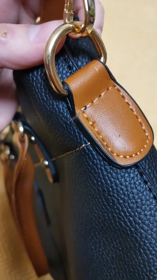 описание соответствует, а качество наверное соответствует стоимости сумка пришла слегка продавденная местами, не смотря на воздушный вкладыш внутри, одна декоративная кнопка вдавлена внутрь, почти везде строчка не аккуратная, концы не припаяны, торчат и уже частично расходятся. боюсь что там, где это не декоративный шов, могут оторваться хлястики-держатели длинного ремня. запаха почти нет, что хорошо. кожа местами уже расходится, так как видимо были ошибки в шитье и были сделаны дырки иголками. края кожи на длинном ремне никак не закрыты и не обработаны -> быстрый износ в целом сумка симпатичная, как на фото. за такую цену делать возврат не буду, поношу сколько выживет. Но в целом это разочарование.