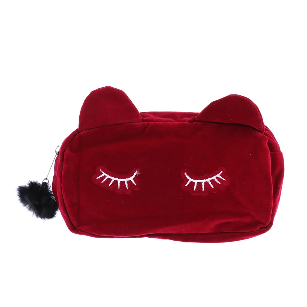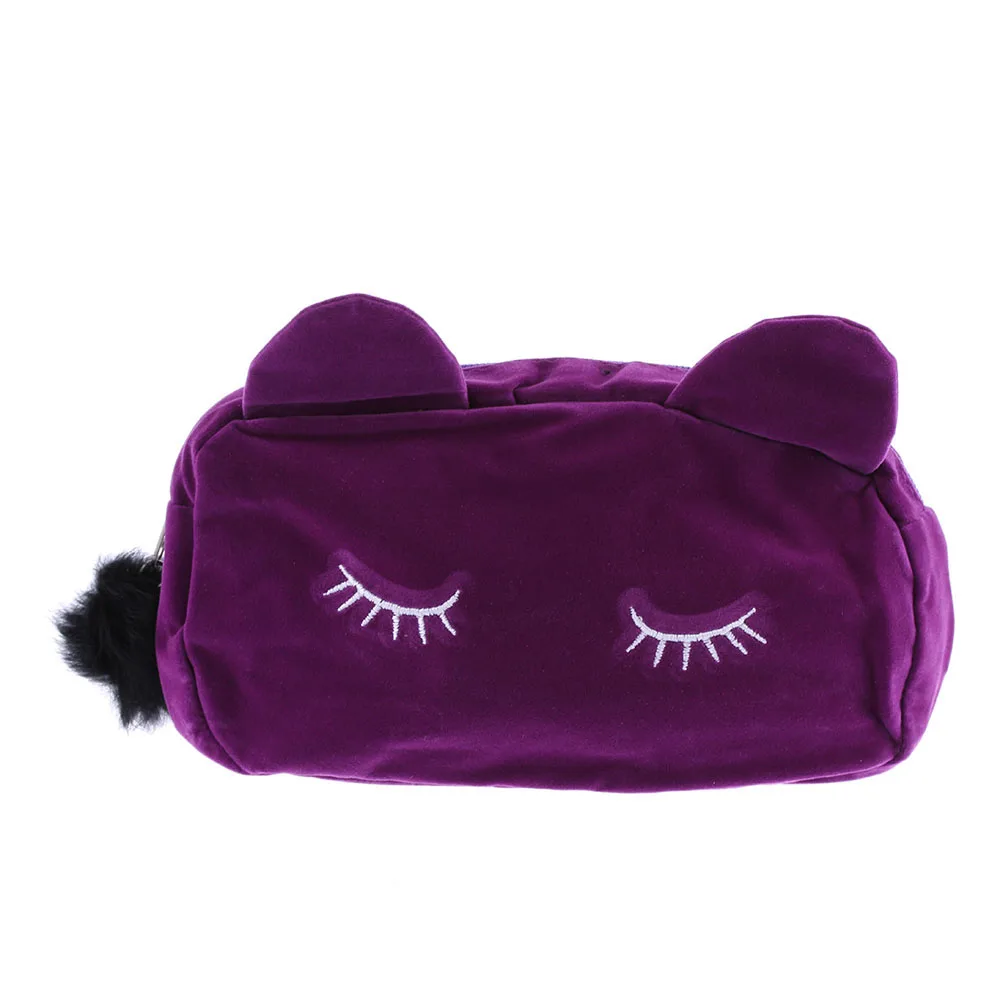 PURDORED 1 шт. портативная косметичка с мультяшным котом, чехол для хранения монет, дорожная косметичка, Сумка с меховым помпоном, Прямая поставка