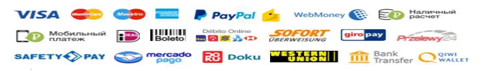 Мы поддерживаем следующие способы оплаты. Все оплаты выполненные на AliExpress обрабатываются сервисом Alipay.