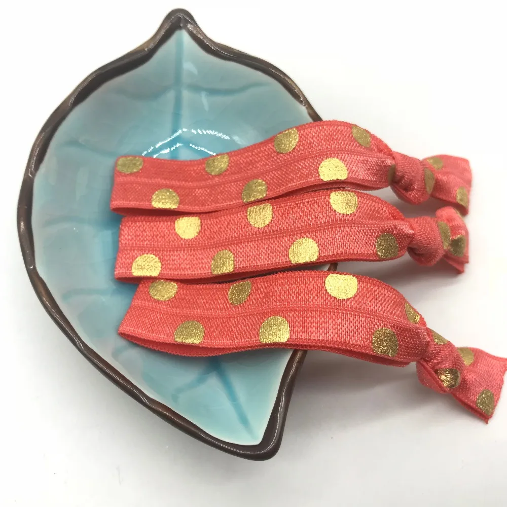 Хит продаж, 14 цветов, 40 шт., 5/8 ", Золотая фольга в горошек, складывается поверх эластичной ленты для волос, резинка для волос, держатель для конского хвоста, аксессуар для волос