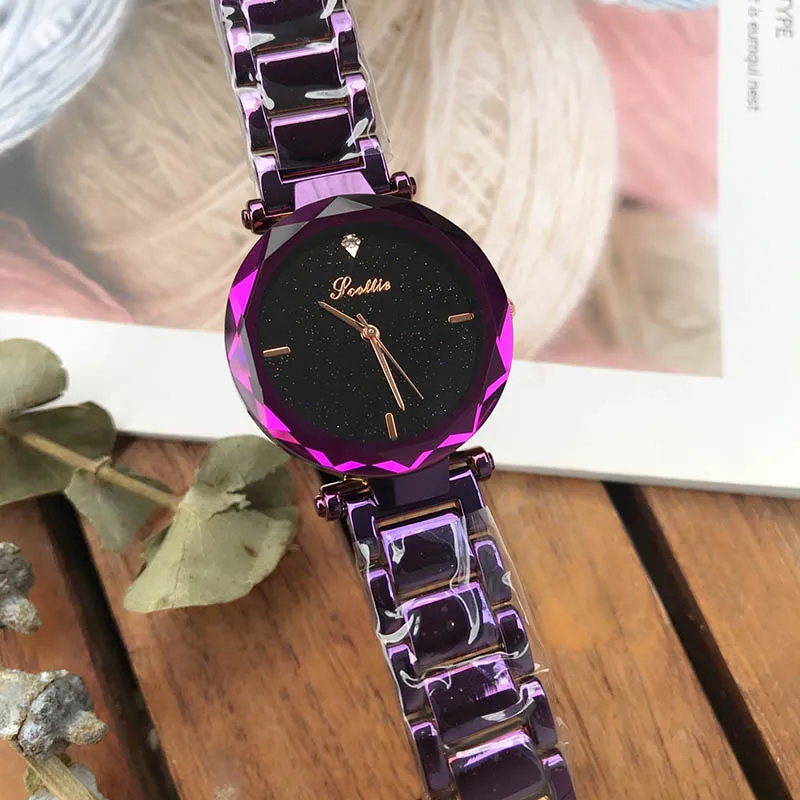 Роскошные модные женские часы, ультрафиолетовые Женские Элегантные повседневные стразы, стальной браслет, платье, женские водонепроницаемые часы
