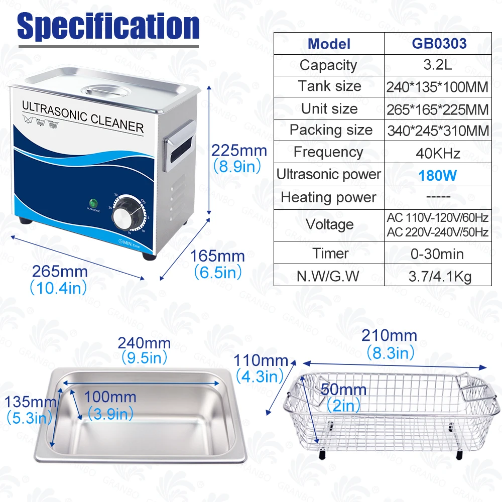 Ультразвуковой очиститель Granbo, 180 л, 110 Вт, 220 ВВ, 40 кГц