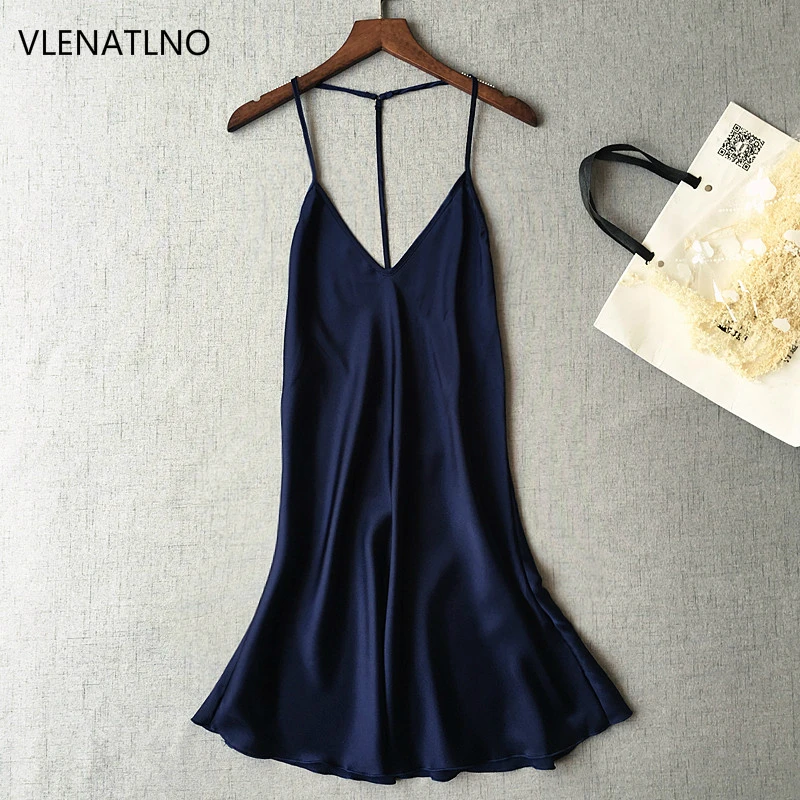 Ночная сорочка женская, шелковая, атласная, без рукавов, с V-образн...