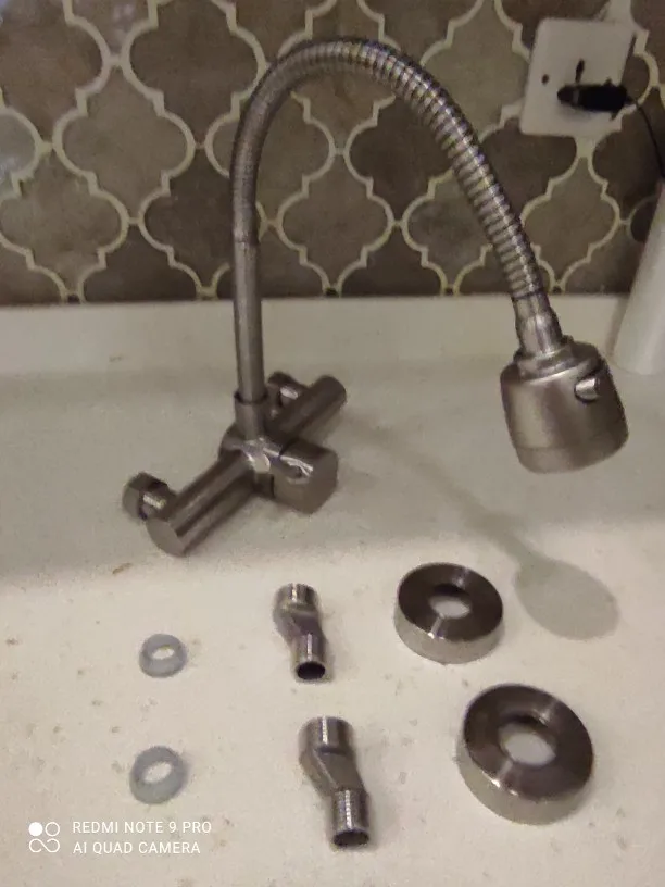 Настенный распылитель из нержавеющей стали SUS304, кухонный смеситель с гибким шлангом, одна ручка, двойные отверстия, 6032