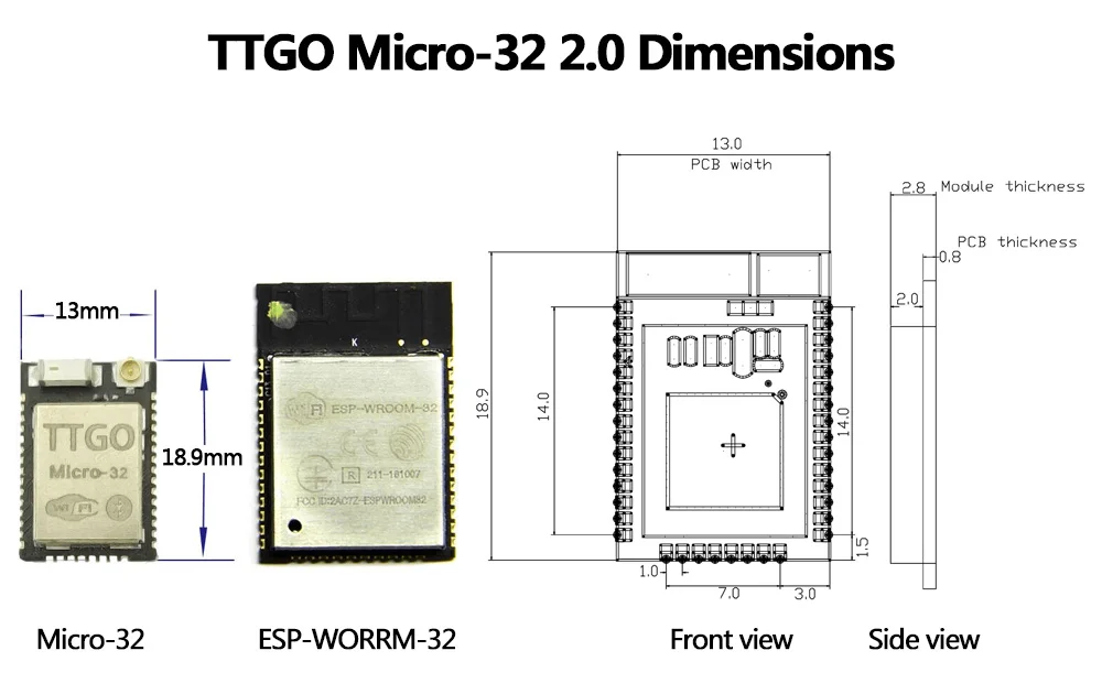 Для встроенной платы разработки, чтобы иметь возможность делать меньше, мы разработали Micro-32, используйте ту же функцию, что и обычный модуль ESP32, но площадь уменьшается на 45% *, что делает продукт может быть спроектирован меньше, есть больше места, чтобы добавить некоторые модули. Дополнительная информация, ссылка: Https://github.com/LilyGO/TTGO-micro32-V2.0 Булавка для продукта
