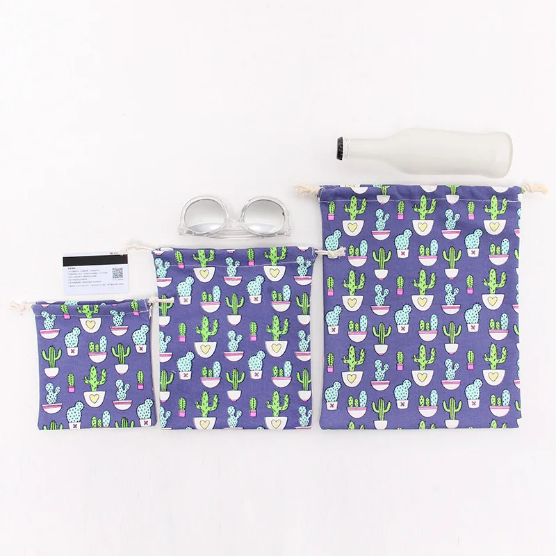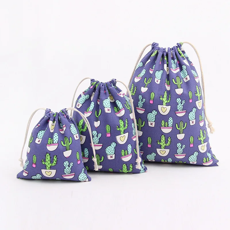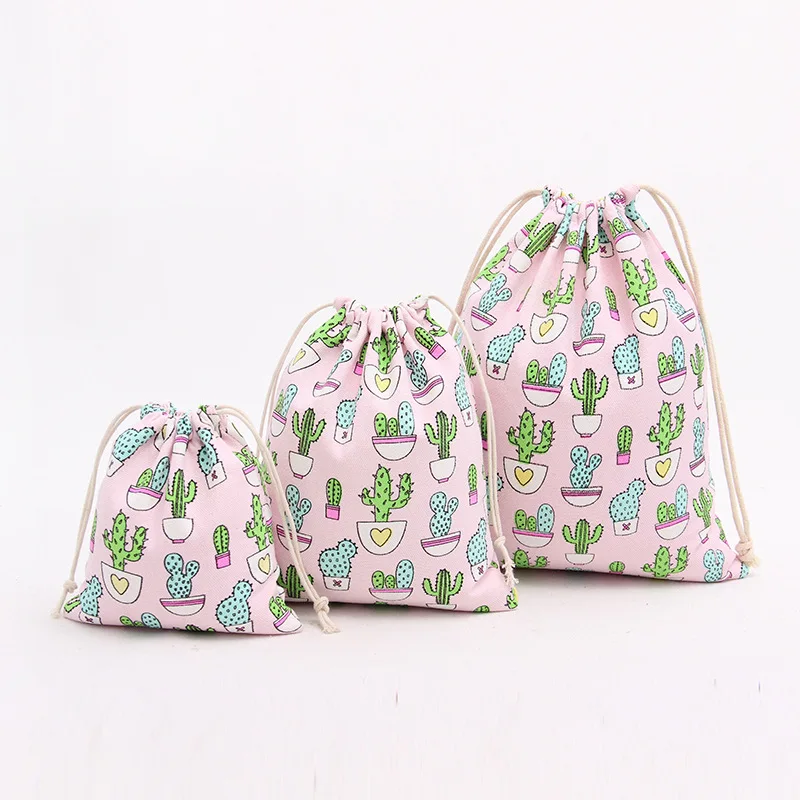 Холщовые сумки eTya унисекс на шнурке с принтом кактуса для женщин, косметички для ювелирных изделий, туфель, дорожный Органайзер