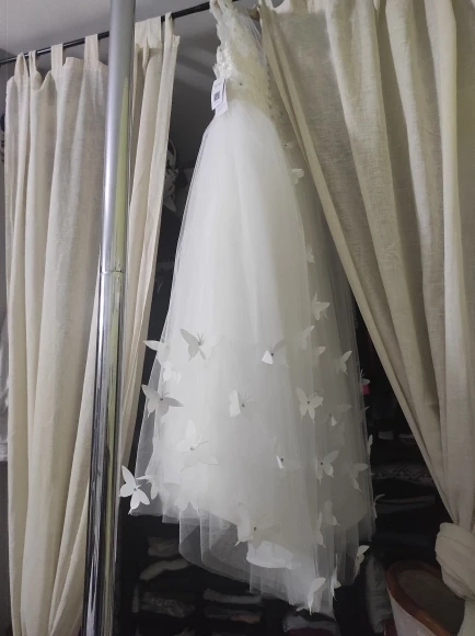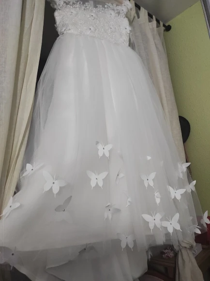 К сожалению, платье повреждено Нет хорошего качества. Бабочки просто застревают и камни отсутствуют.