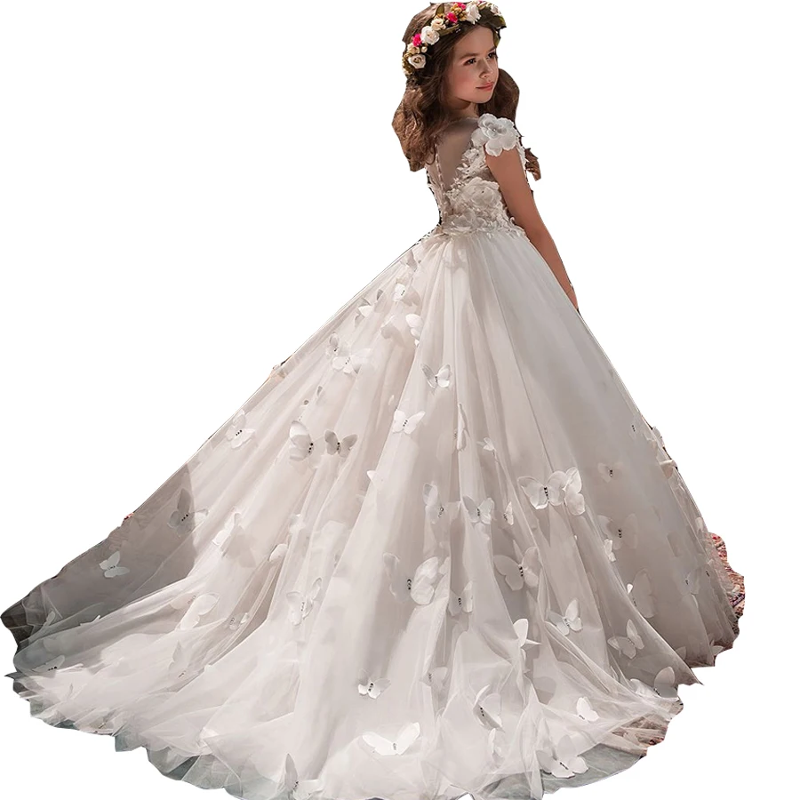 Новые детские наряды для торжества, вечерние кружевные бальные платья 2022, платья для девочек с цветами для свадьбы, первого причастия, платья для девочек