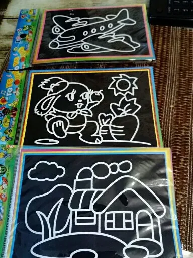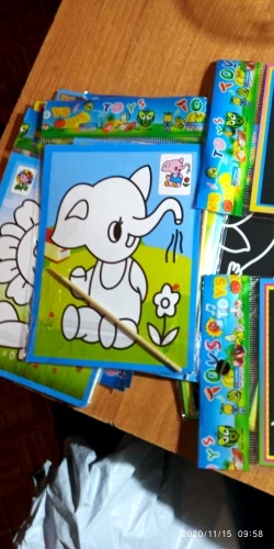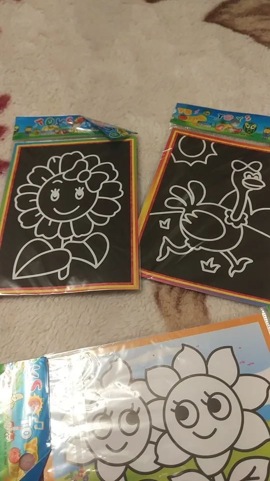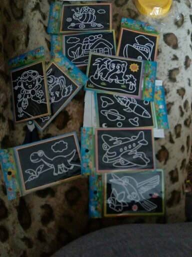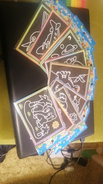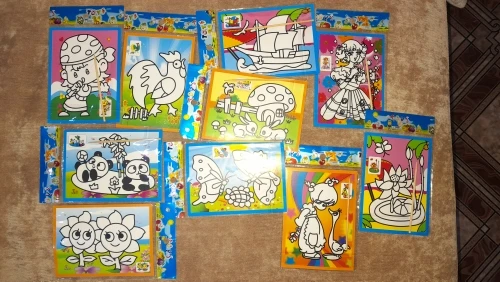 Заказывала 20 картинок. Штука классная. Сын 2 года залипнуть может на полчаса, а то и на час, если вовремя подсунуть другую картинку. Научились раскрашивать более менее не выступая за границы, получается даже симпатично)