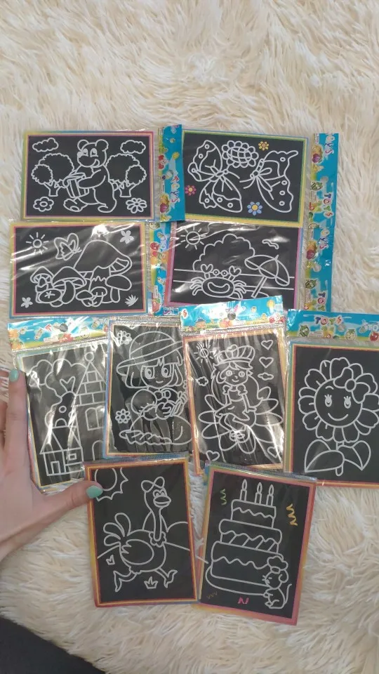 Волшебная бумага для рисования с палочками для детей, 10 шт., 13x9,8 см, бумага для скретч Арта, красочные игрушки для рисования