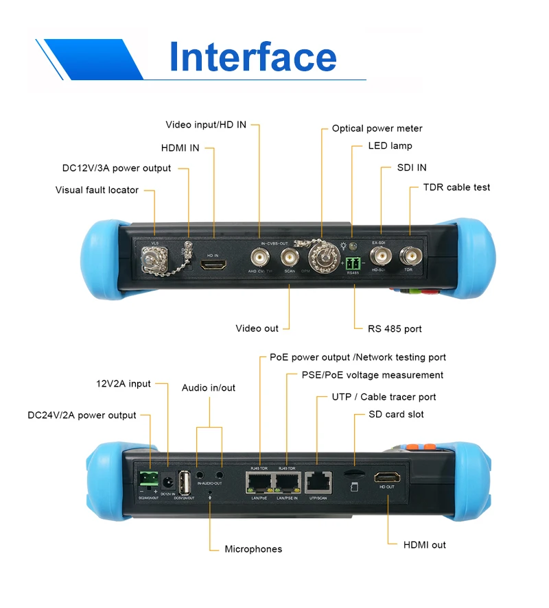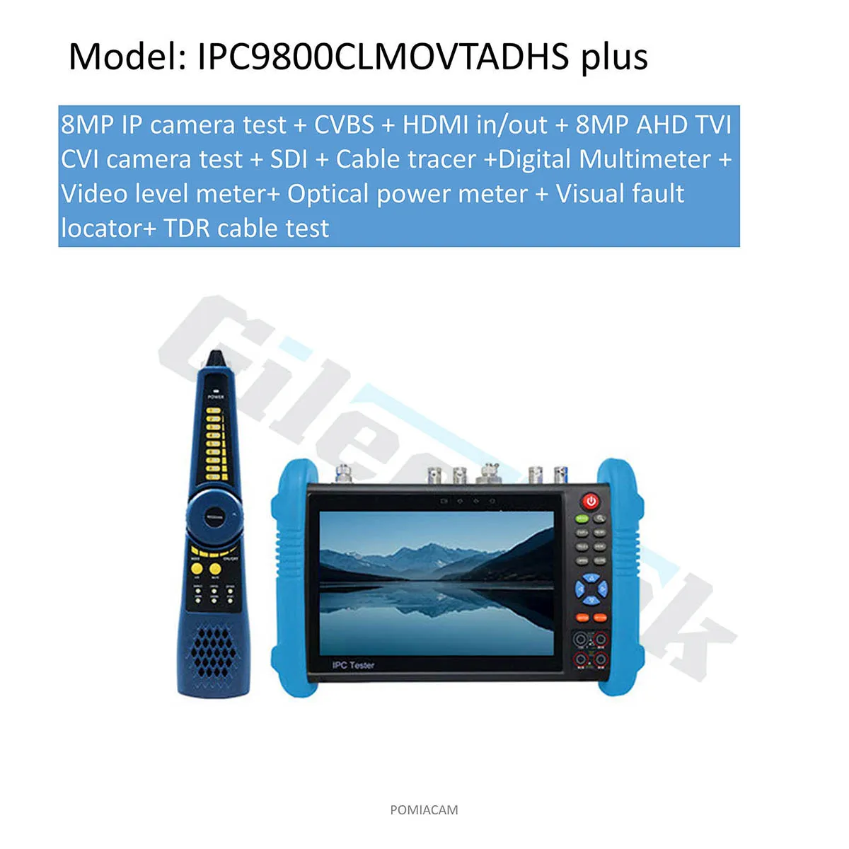 IPC9800-CLMOVTADHS Модель поддерживает 8MP TVI / CVI 8MP /8MP AHD Тест камеры, 1080P SDI Тест камеры, HDMI вход, HDMI выход, кабель tracer, мультиметр, оптическая мощность, TDR кабельный тестер, красная лазерная насадка