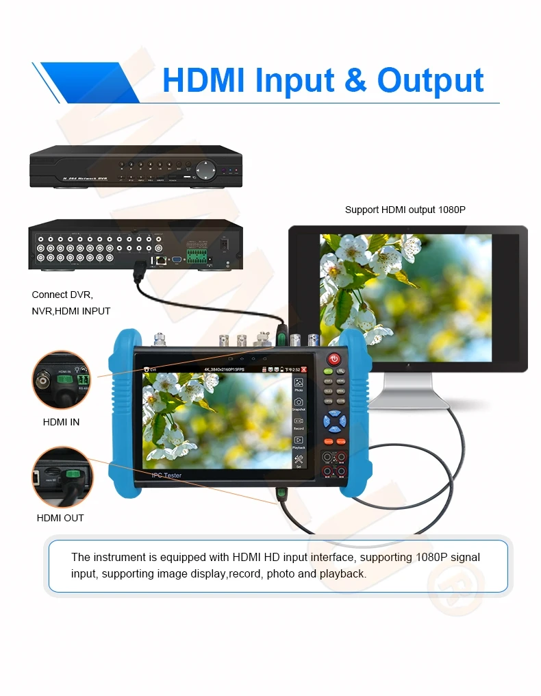 7-дюймовый сенсорный экран ip-камеры монитор предназначен для обслуживания и установкиIp-камеры, аналоговые камеры, камеры TVI, CVI AHD, HD и EX-SDI, а также тестирование камеры 4K H.264 /4k H.265Через мейнстрим,