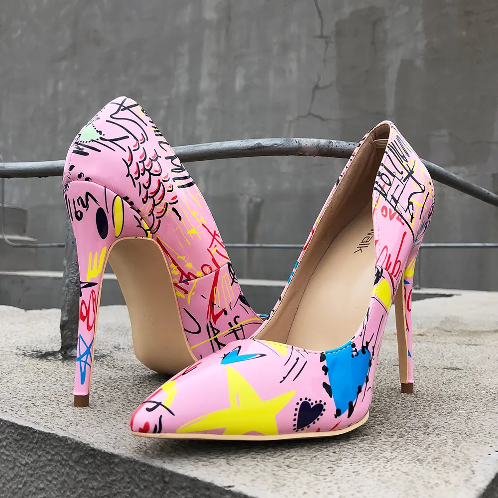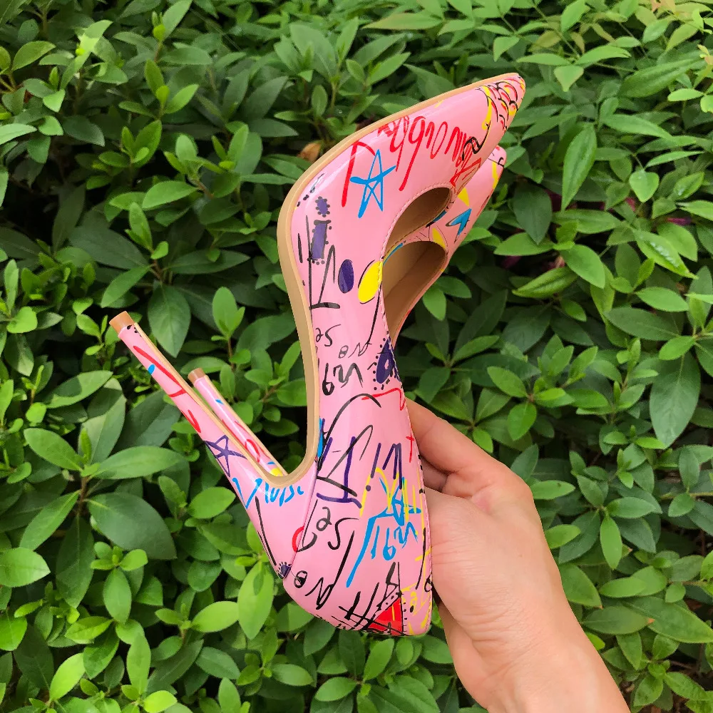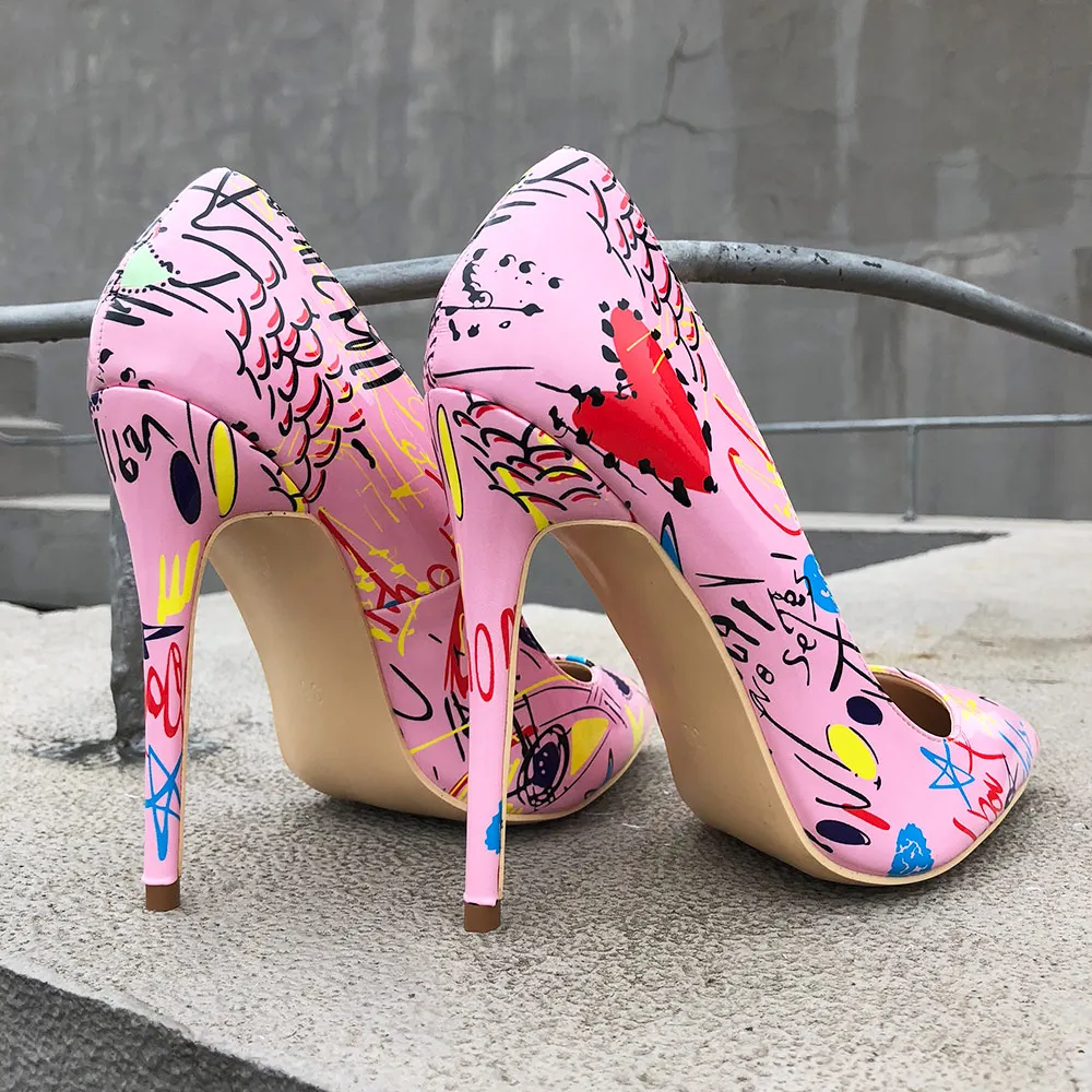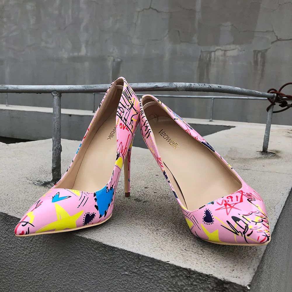 Женские туфли на шпильках Veowalk, розовые туфли-лодочки с художественным принтом граффити, с острым носком, на заказ
