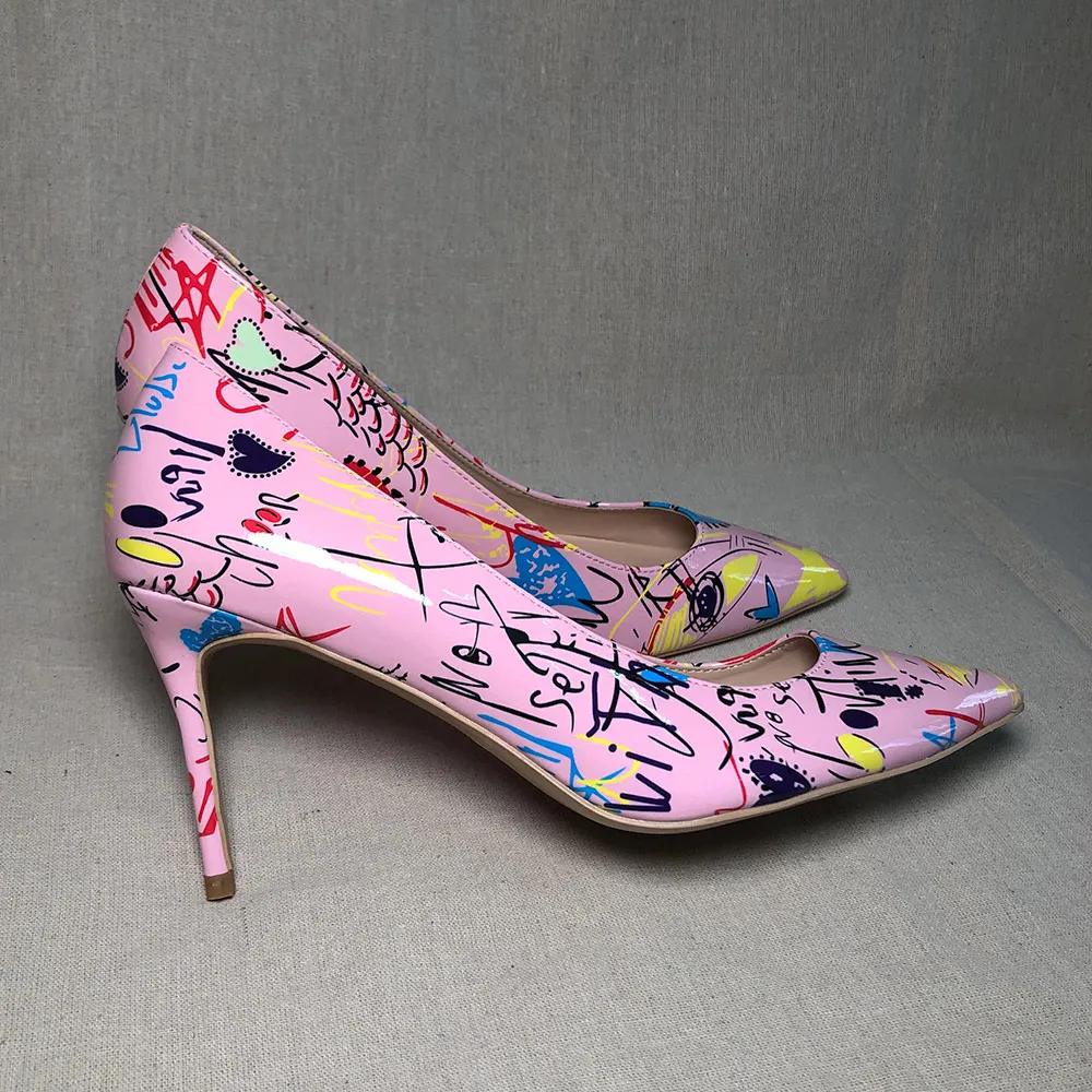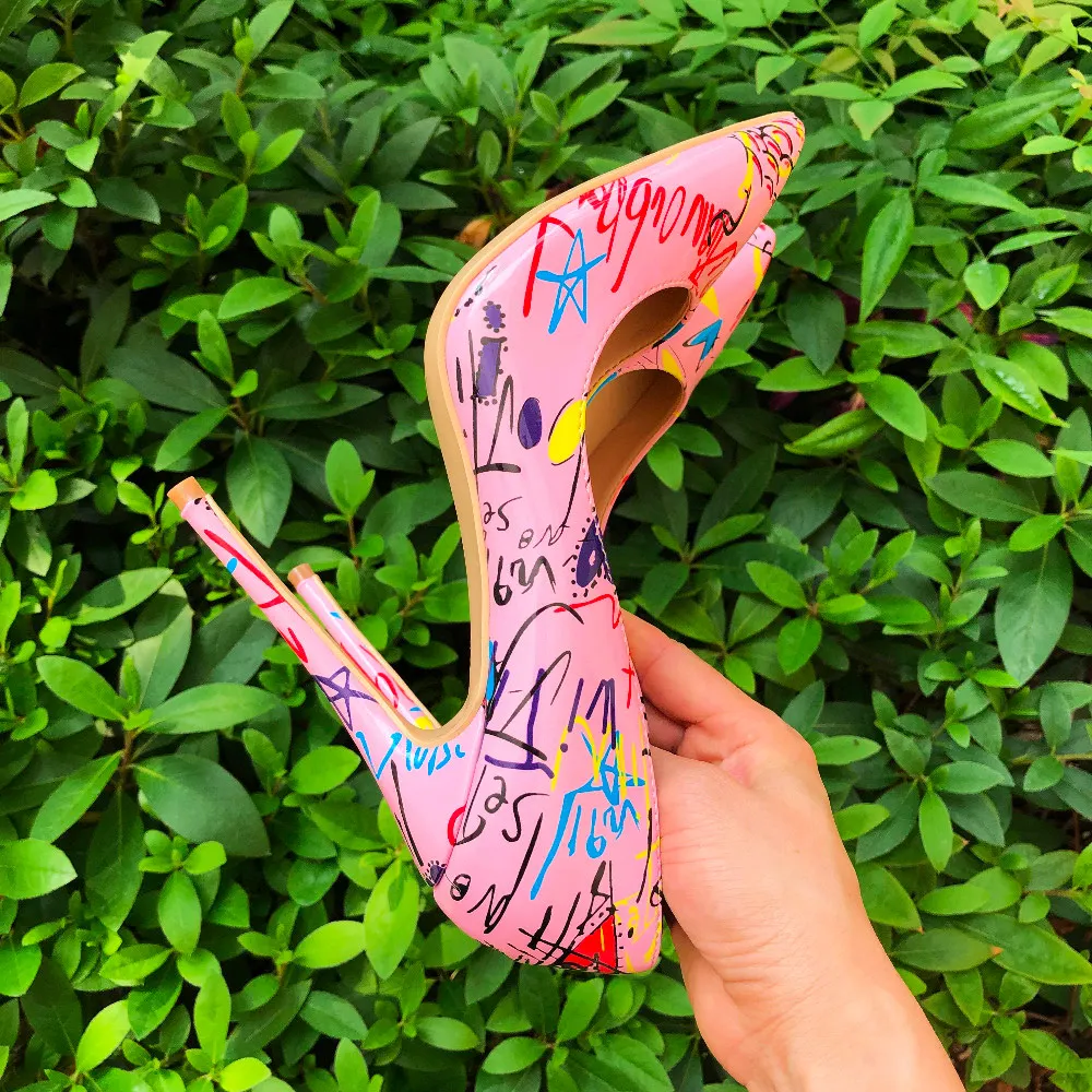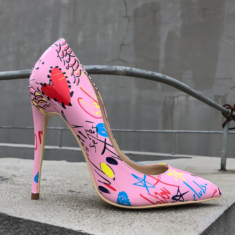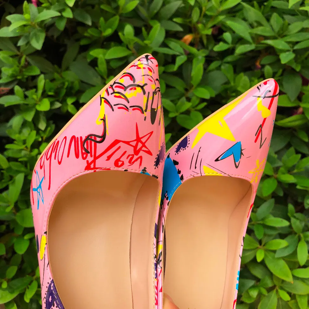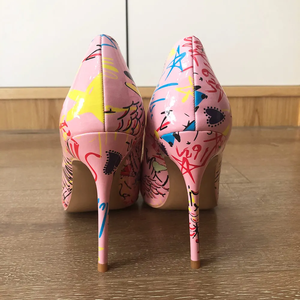 Женские туфли на шпильках Veowalk, розовые туфли-лодочки с художественным принтом граффити, с острым носком, на заказ