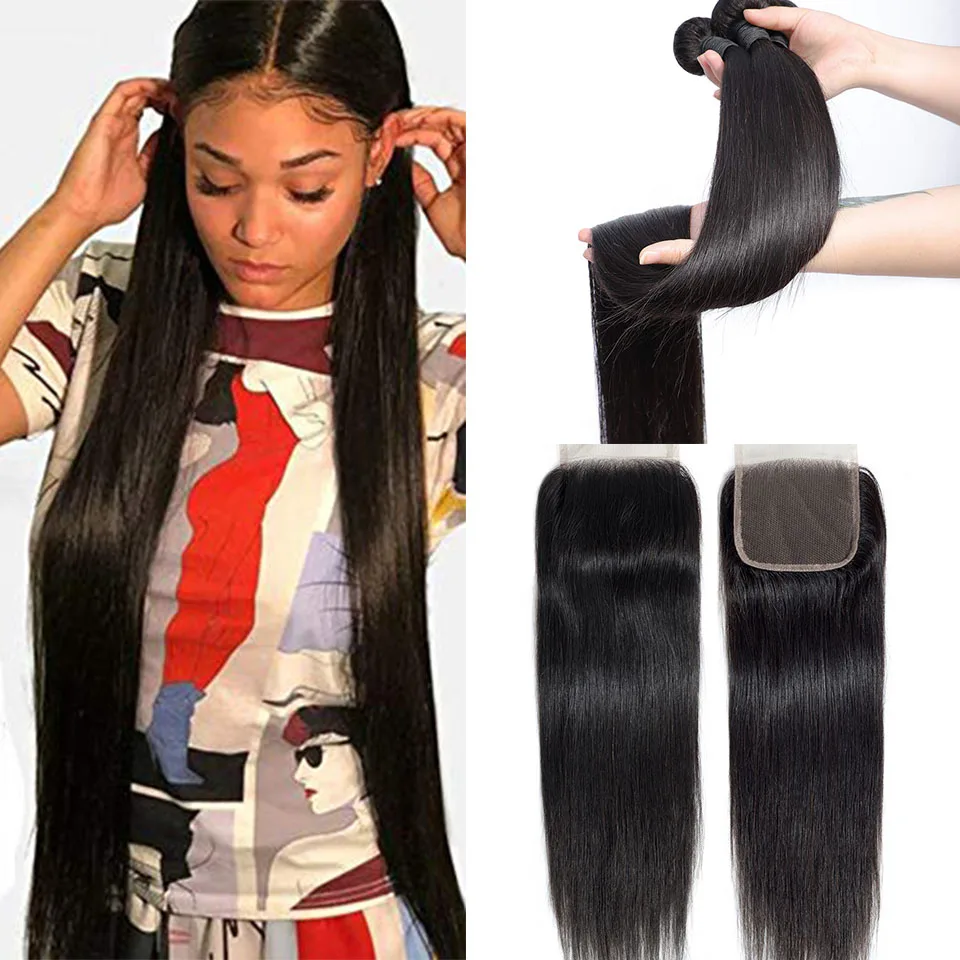 Queenlike перуанские пучки волос с закрытием не Реми Уток 100% человеческие волосы 34 пучки прямые волосы пучки с закрытием