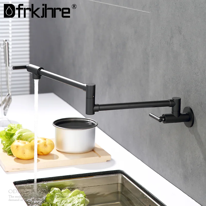 Складной смеситель для кухни, кран с наполнителем для раковины, настенный кран для холодной воды, латунный хромированный матовый никель, масло втирают
