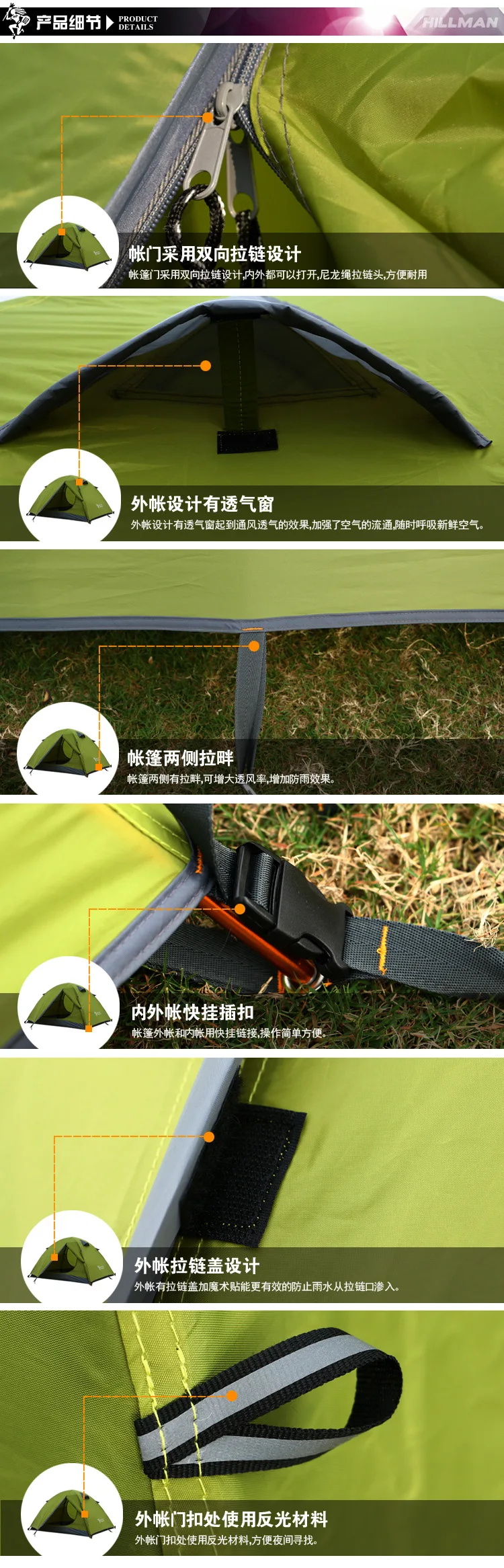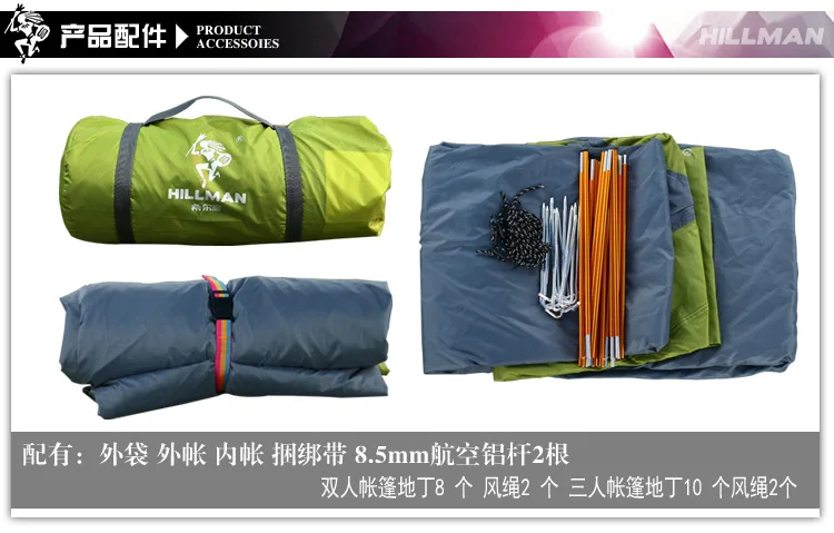Двухслойная алюминиевая палатка Hillman, Ультралегкая водонепроницаемая и непродуваемая палатка для кемпинга на 3 человек, Пляжная палатка icon star icon star icon star icon star icon star