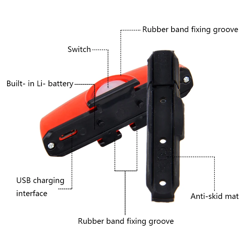 Задсветильник для велосипеда, светодиодный, водонепроницаемый, зарядка через USB, 350 мАч