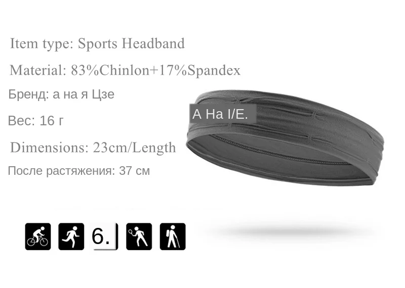 Бренд: AonijieМатериал: 83% Chinlon + 17% спандексЦвет: серый, синий, черный, оранжевый красный, флуоресцентный зеленыйРазмер: один размер, подходит для окружности головы 44-58 смРазмеры: 23 см/длина, после растягивания-37 смВес: 16 гПосылка включает в себя: 1 шт. напульсник