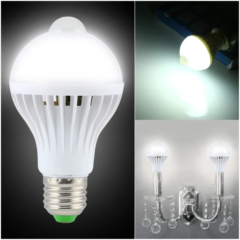 Лампочка E27 с пассивным ИК датчиком движения, управление звуком и светом, E27, инфракрасная светодиодная энергосберегающая лампа s, 3 Вт, 7 Вт, 9 Вт, 220 В, для домашнего освещения