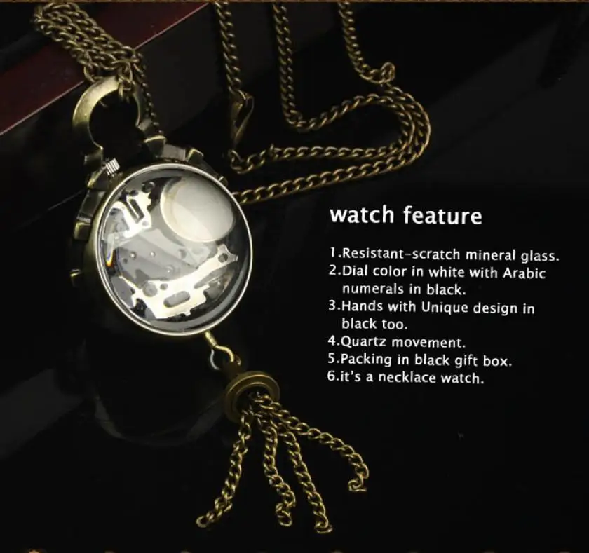 Часы Timezone #25 в стиле ретро, бронзовый кварцевый шар, стеклянные карманные часы, ожерелье, цепочка, карманные часы в стиле стимпанк
