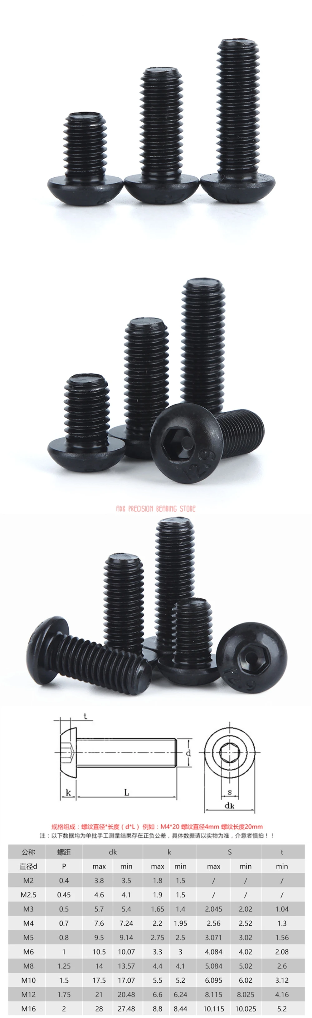 2021 Vis Tornillos Para Madera 12,9 Класс M6 M8 M10x8101216202530 мм серии черный шестигранный винт с цилиндрической головкой и шестигранным углублением под ключ круглая чашка