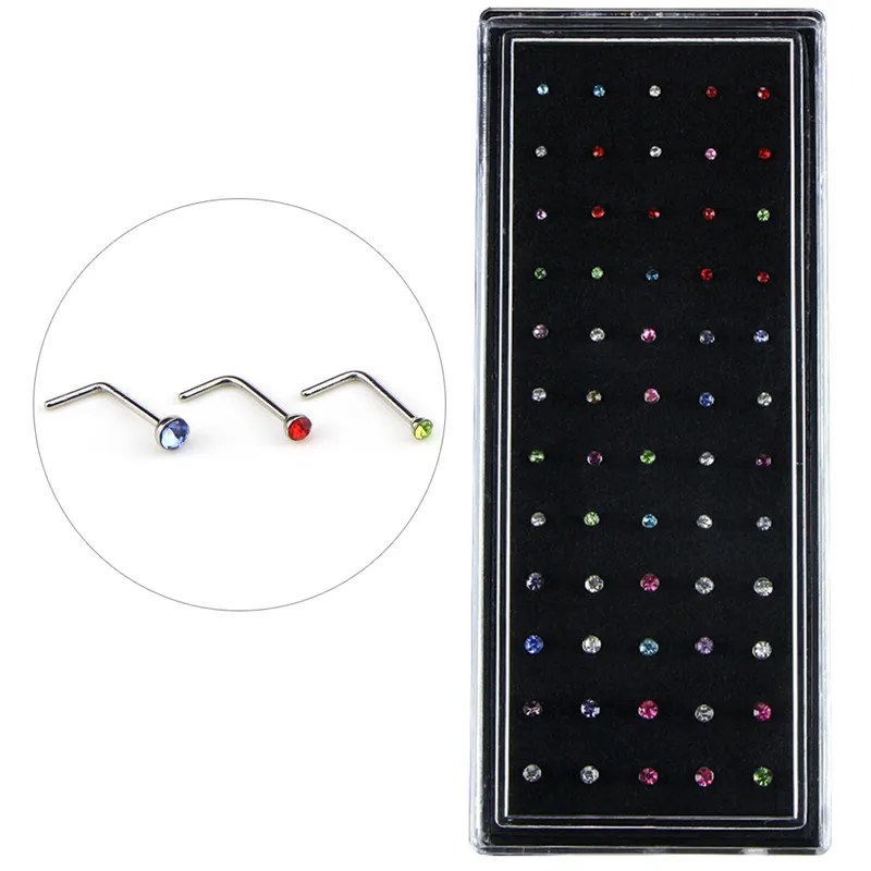 Набор колец для носа в носу 60 шт.упак. L, комплект из нержавеющей стали с кристаллами для пирсинга, ювелирное изделие для хирургический стальной Нос носа для девушек и женщин