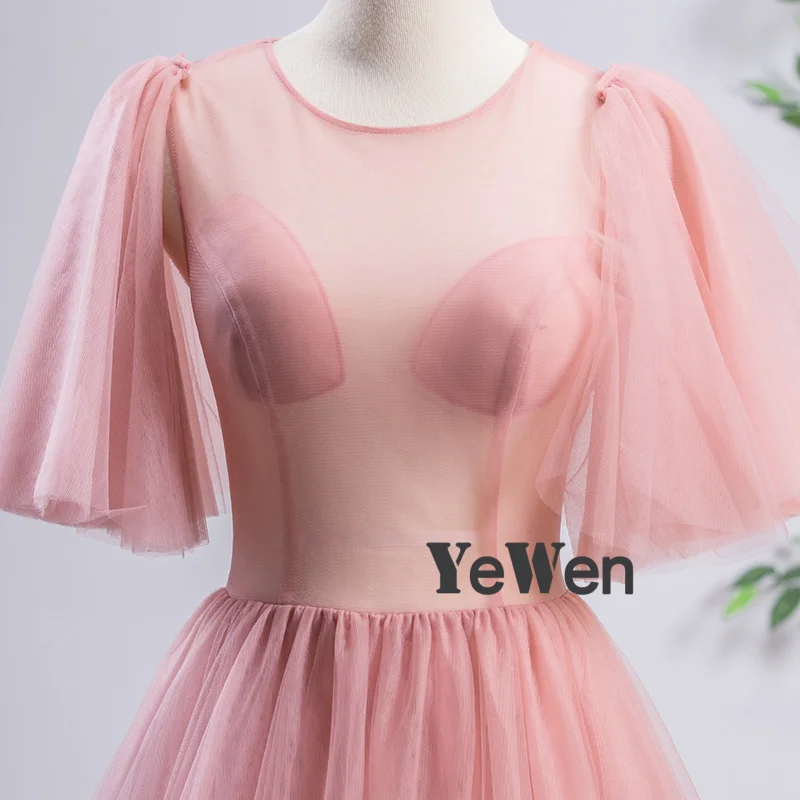 Женское вечернее платье YeWen Illusion, темно-розовое вечернее платье длиной до пола с круглым вырезом для выпускного вечера, модель 2020