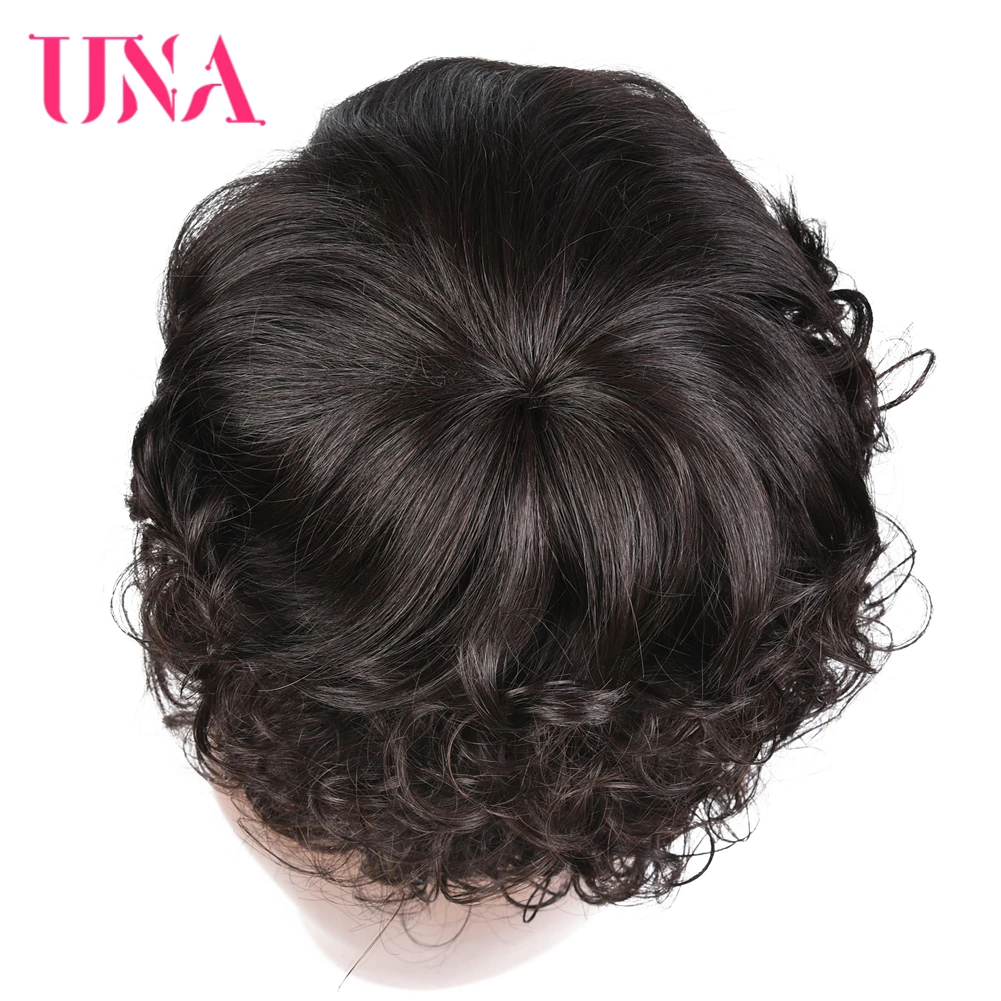 Женские парики из человеческих волос UNA, короткие вьющиеся волосы, 120% плотность, 11 цветов, 8 дюймов