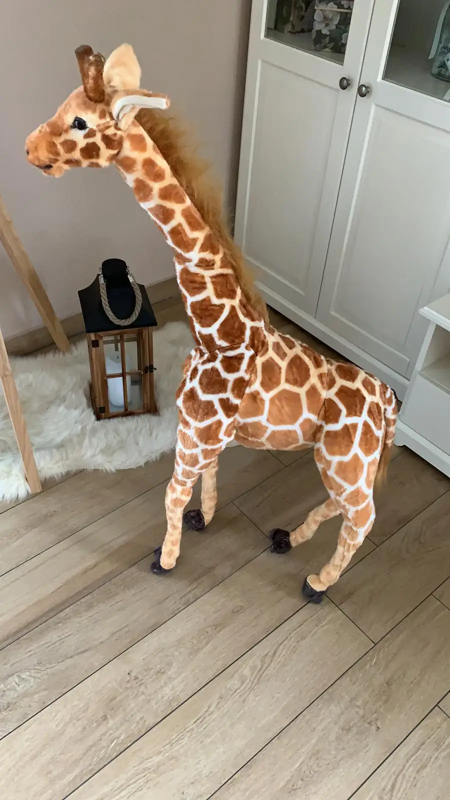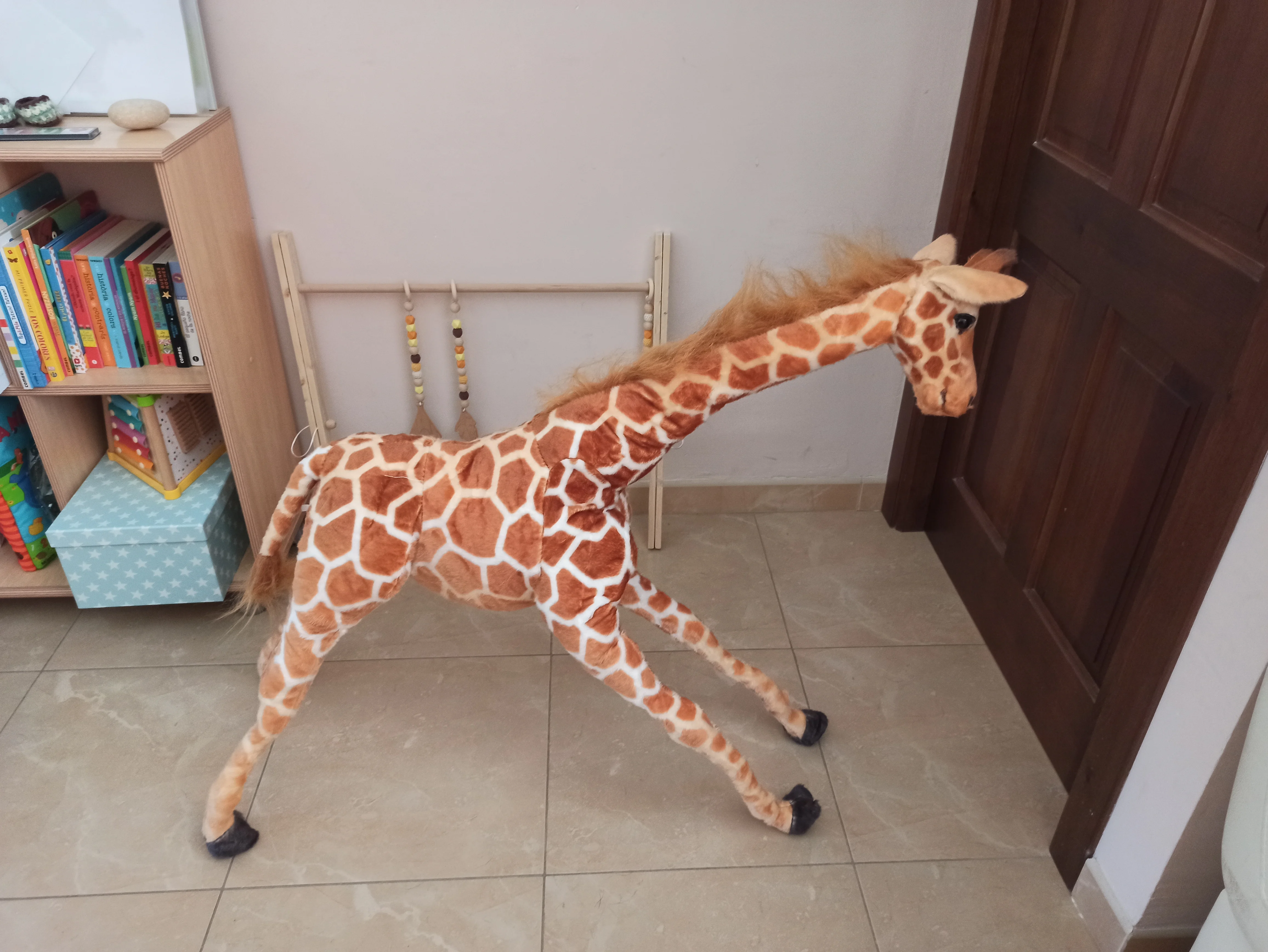 Жираф очень хороший! Я доволен ценой! Ножки имеют небольшую раму для перепела, чтобы иметь возможность поставить жирафа стоя или сидя Только нижняя сторона. Волосы гривы и хвоста легко отделяются! Затем он будет в конце декоративные предметы в детской комнате