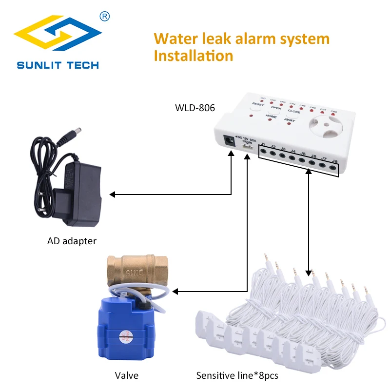 Умный домашний детектор утечки воды, сигнализация, датчик обнаружения утечки, оповещение о потоке, домашняя система охранной сигнализации 12 ",34", 1"