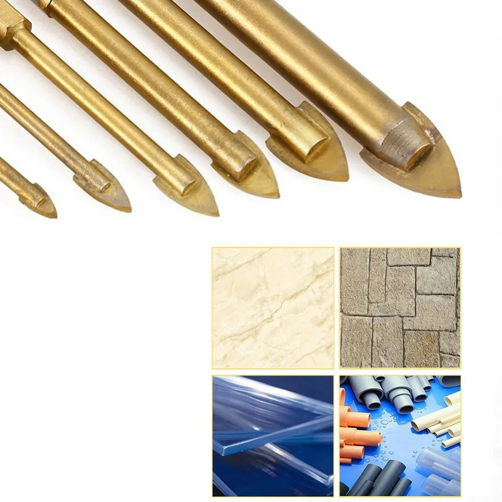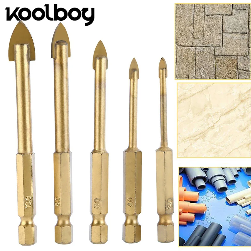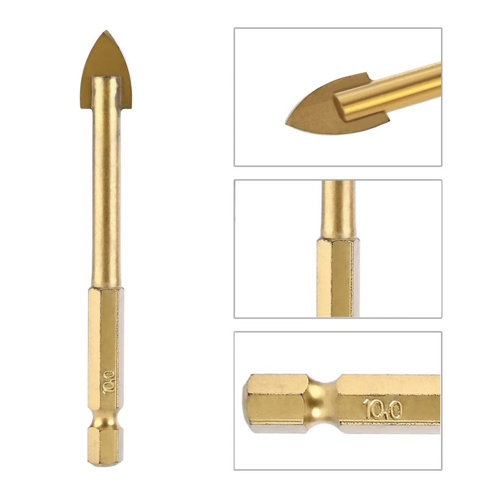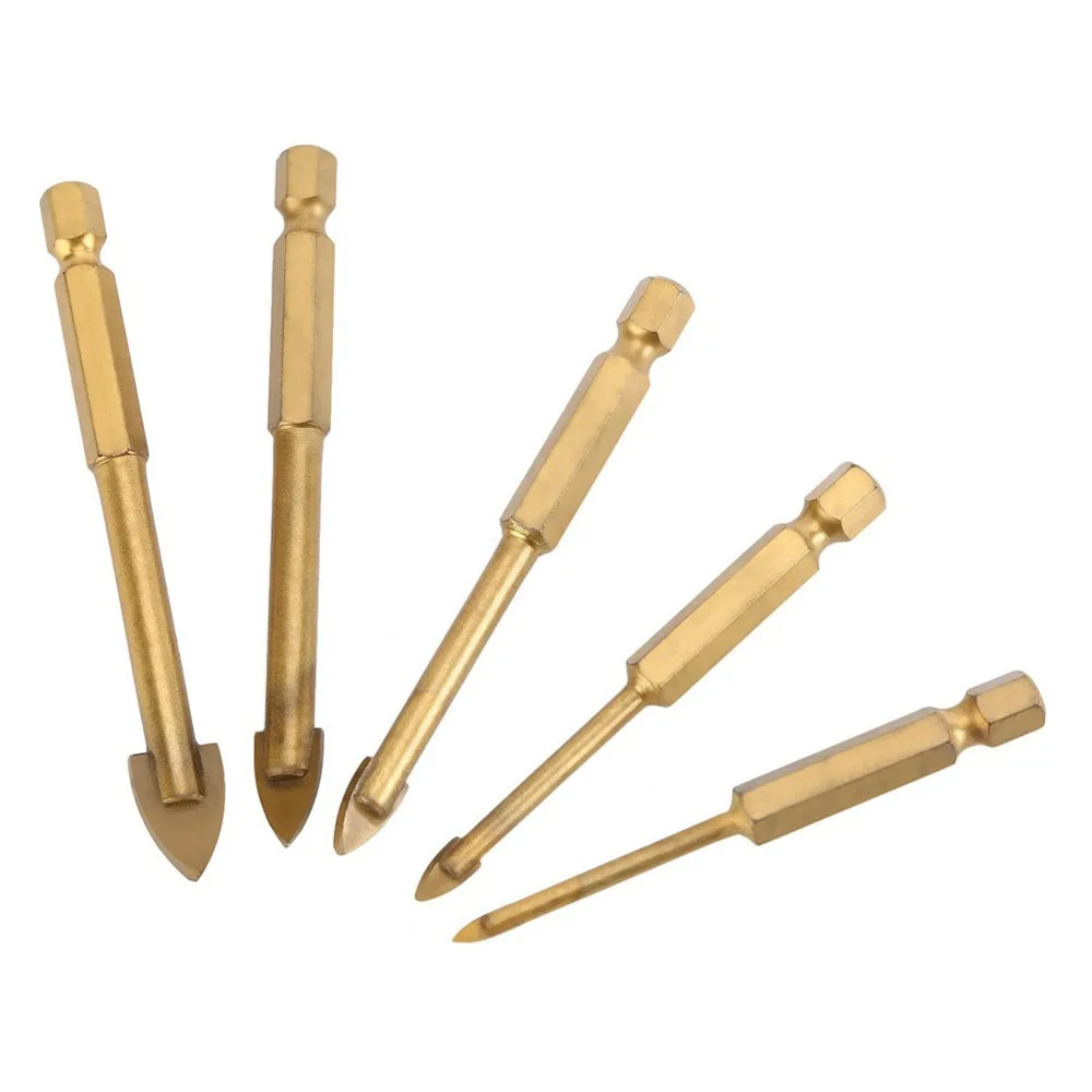 Набор сверл из карбида титана и стекла для плитки, 5 шт., 14 дюйма, шестигранный хвостовик, сверла для сверления отверстий в ванных комнатах, настенных зеркалах 3 мм, 4 мм, 6 мм, 8 мм, 10 мм