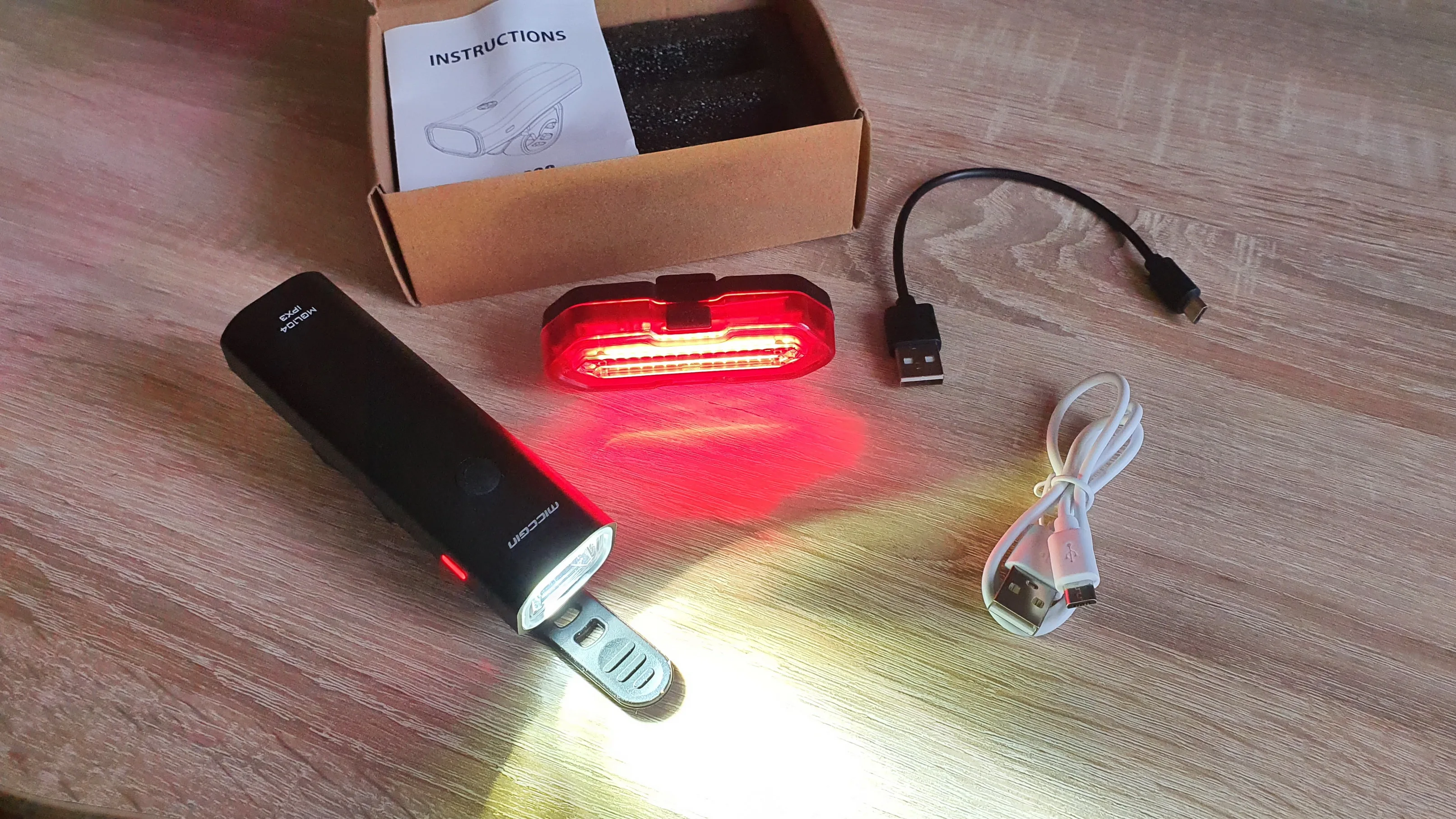 Передняя фара светит хорошо, имеет 2 режима яркий и средний. Задняя имеет 5 режимов тоже супер яркая. В общем отличный вело набор)