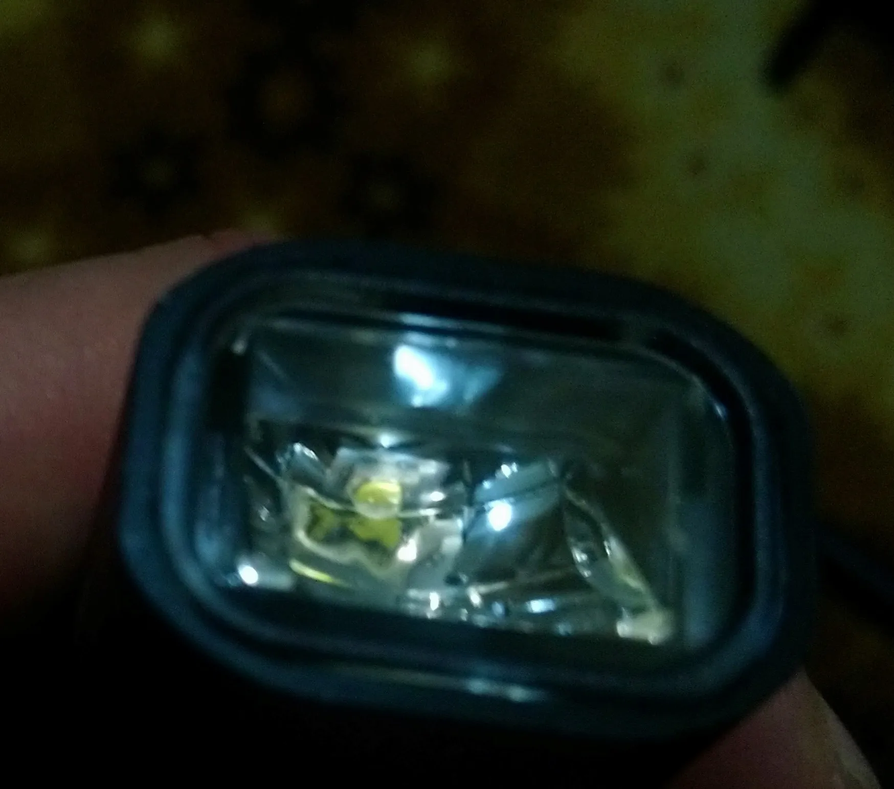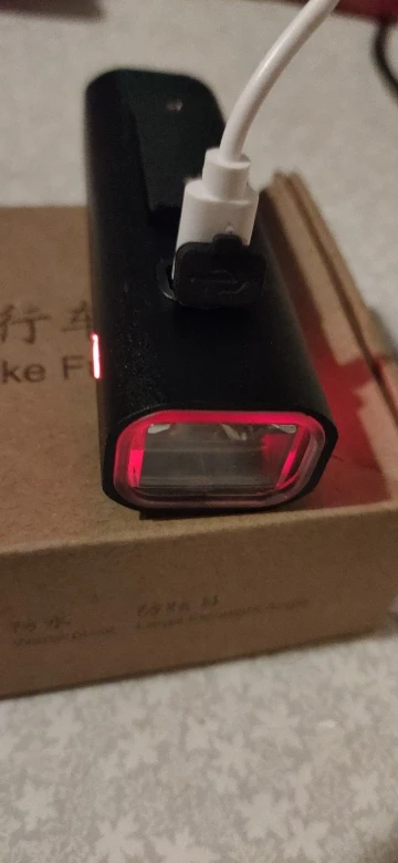 Фонарик приехал за 12 дней до Свердловской области. Заказывал только передний. Фонарь Ехал из Китая (в России были в наборе с задним фонарем) Цена с купоном и монетками 820 рублей. Фонарь имеет 4(!!!) режима работы (не 3 и не 2). Короткое нажатие - светит ярко (400 люменов) Ещё одно нажатие - светит чуть слабее (150 люменов). Третье нажатие выключает фонарик. В выключенном состоянии долгое нажатие включает режим SOS, далее короткое нажатие включает стробоскоп, далее выключение. С обеих сторон есть светодиод красного цвета. На зарядке сначала горит красный, при полной зарядке загорается зелёным. Кнопка включения прорезинена. Гнездо зарядки закрывает довольно плотная заглушка. При долгой работе чувствуется нагрев. Полностью разряженый фонарь взял в себя 1914 ампер. Зарядился за 5 ч 26 мин. Светодион расположен не по центру, а сверху. Светит на рассеиватель, что позволяет не слепить встречку, делает хороший свет по бокам. Работает примерно 2.5 часа непрерывно.