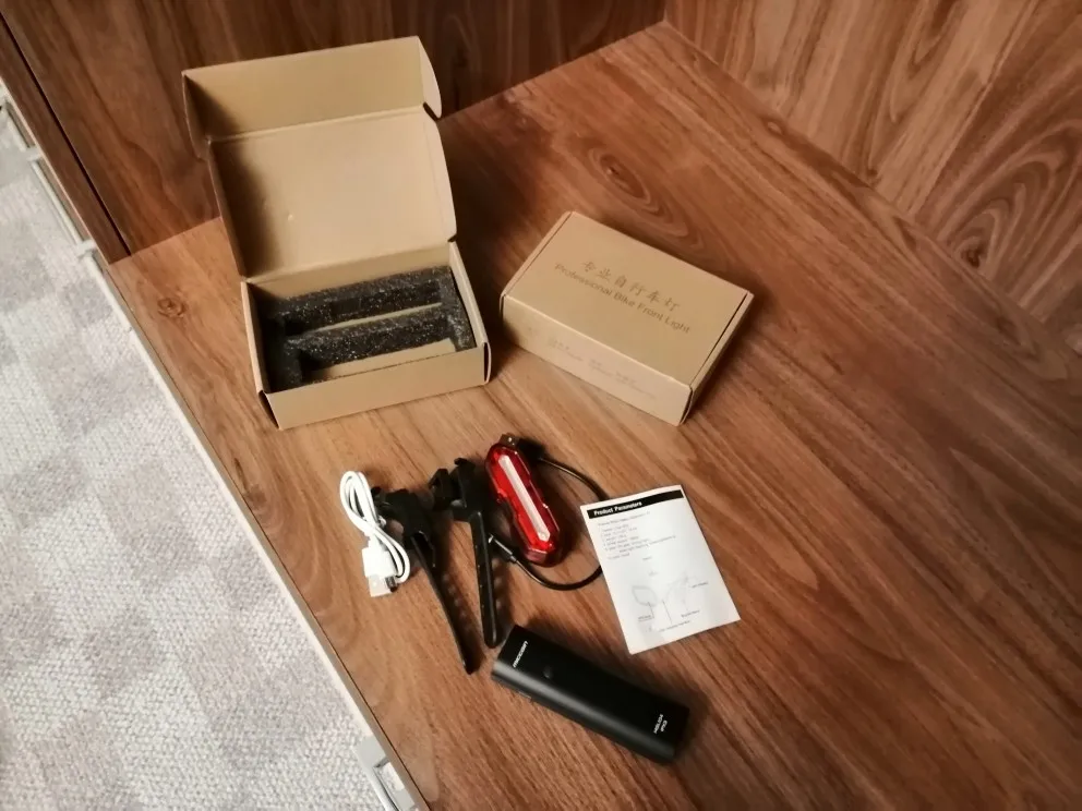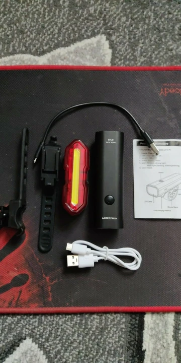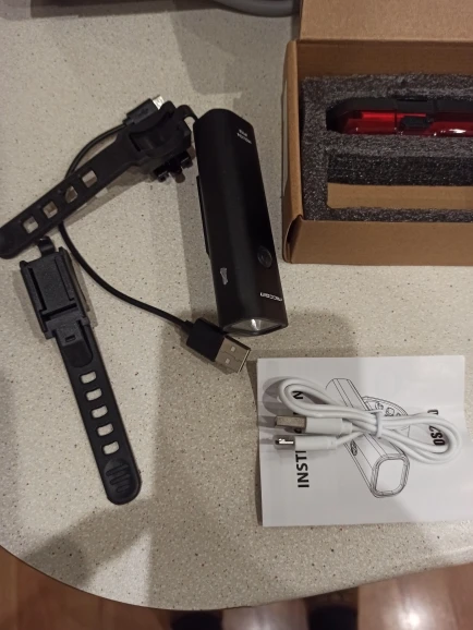 Доставили очень быстро(3 дня из РФ в СПБ). Коробка доехала не мятая. Комплект полный(2 micro usb, основной фонарь, задний фонарь, инструкция, 2 резиновых крепления). Пока не тестил. на велосипеде держится достойно, от постукивания велосипеда об пол с присоединенным фонарем, последний не перекашивается. Очень хорошо держится.
