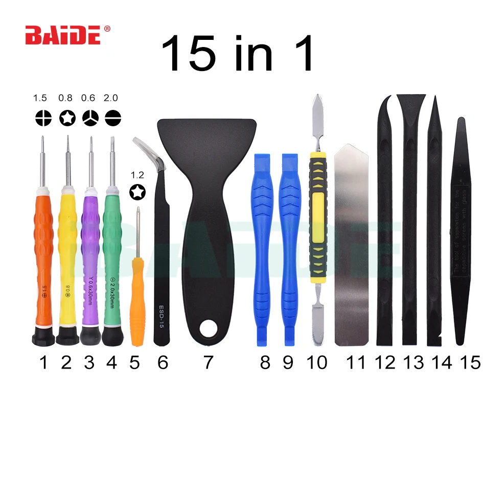 15 в 1 смартфон Ремонт набор инструментов включает в себя инструмент для открытия с нейлоновым Spudgers 2 антистатические щипцы-нож 20 компл.лот