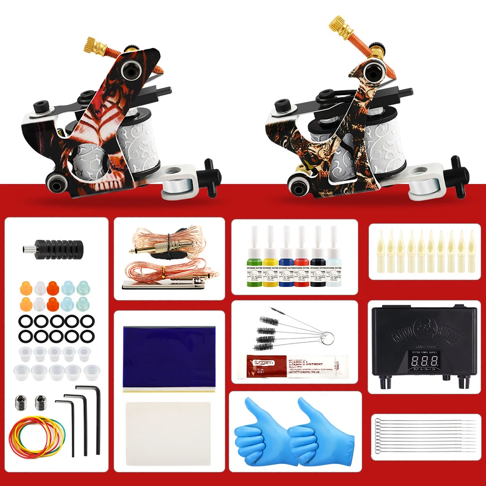 Татуировки Kit с чернилами 8 Обёрточная бумага катушки татуировки машины захваты для иглы Питание тату Набор для начинающих набор аксессуаров
