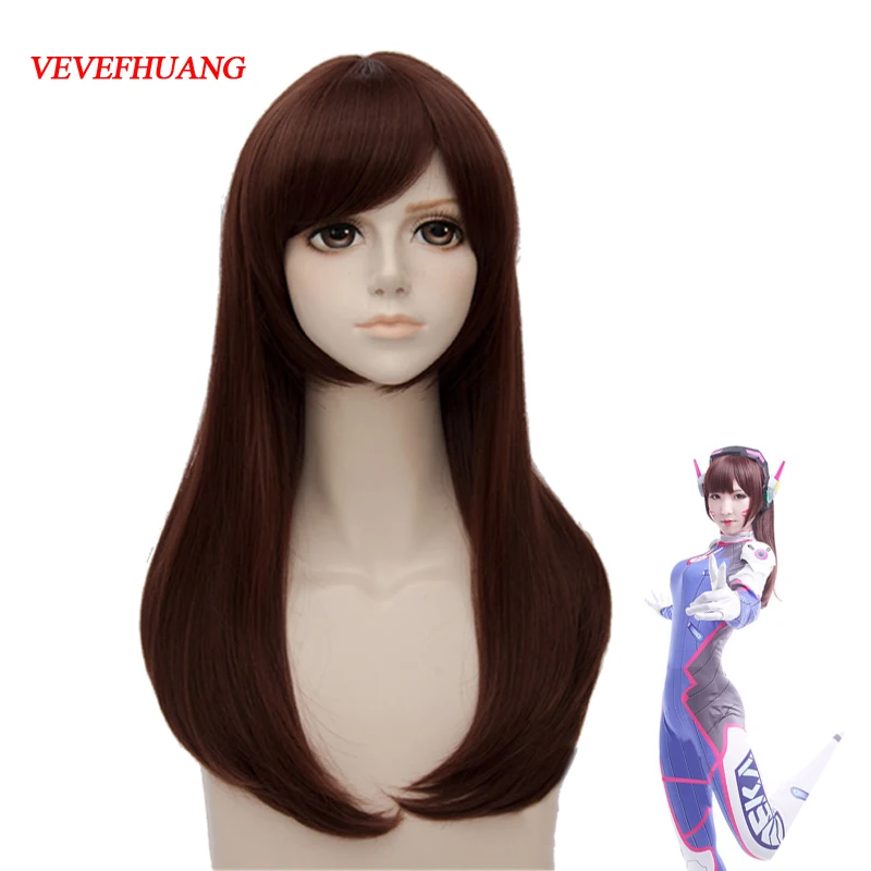 VEVEFHAUNG Kосплей игра OW DVA D.va Copslay костюм коричневый цвет Хана песня парик Peruca длинный женский Хэллоуин модвечерние