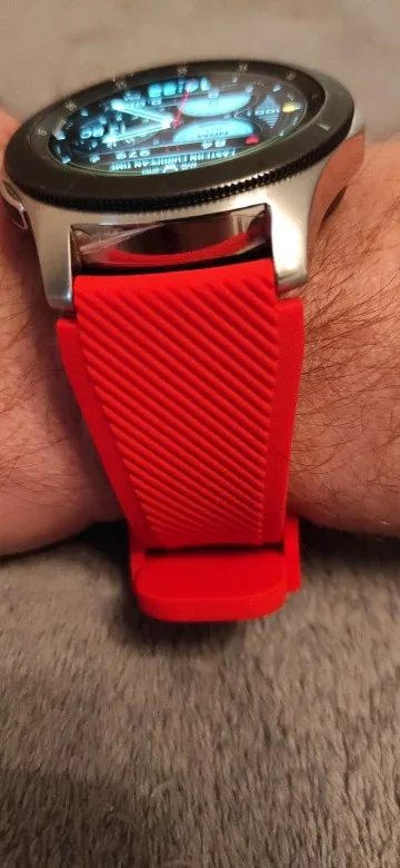Ремешок хороший по качеству. Особой разницы с оригинальным самсунговским не заметил. Посмотрим, как проявит себя в носке. Подошел хорошо. Цвет вживую смотрится не вырвиглазно-кислотным, что радует. Посылка шла долго, не отслеживалась и в определенный момент потерялась. Но нашлась спустя время, что хорошо. Рекомендую ремешок, такой же по качеству, как оригинал, только в разы дешевле - явно стоит покупки.