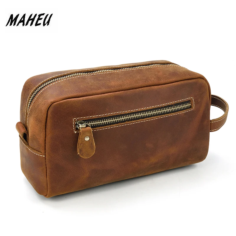 Повседневный мужской кожаный клатч-кошелек, длинная сумочка из натуральной кожи унисекс, клатч на молнии, сумочка для Хранения Туалетных Принадлежностей