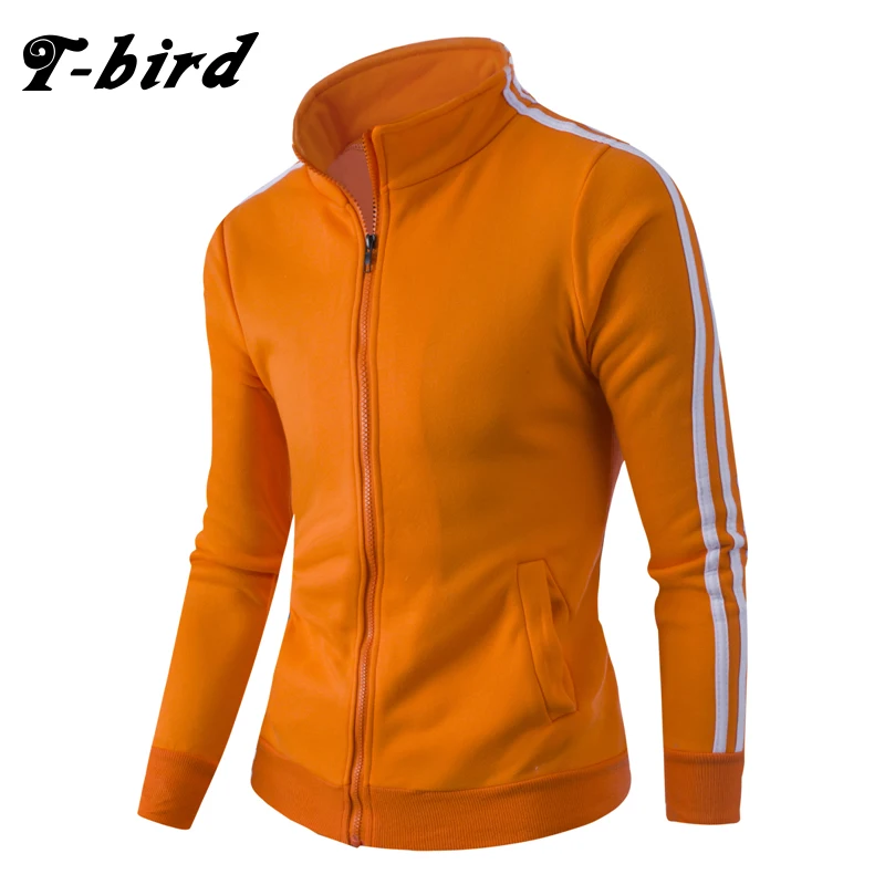 Толстовка мужская на молнии T-bird, брендовая повседневная кофта с высоким воротником, спортивное Полосатое худи, 4XL QAZ, осень 2018