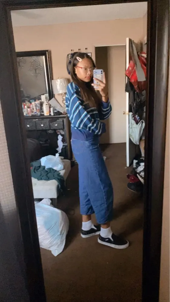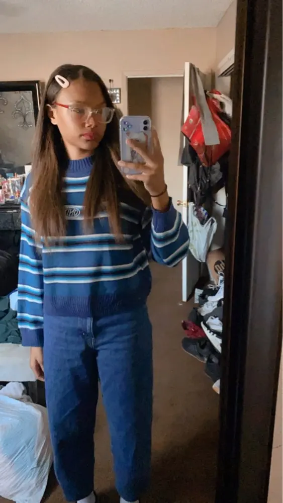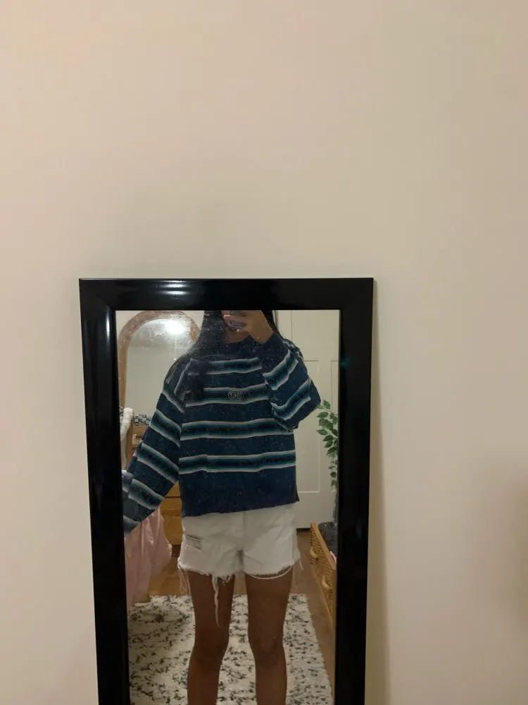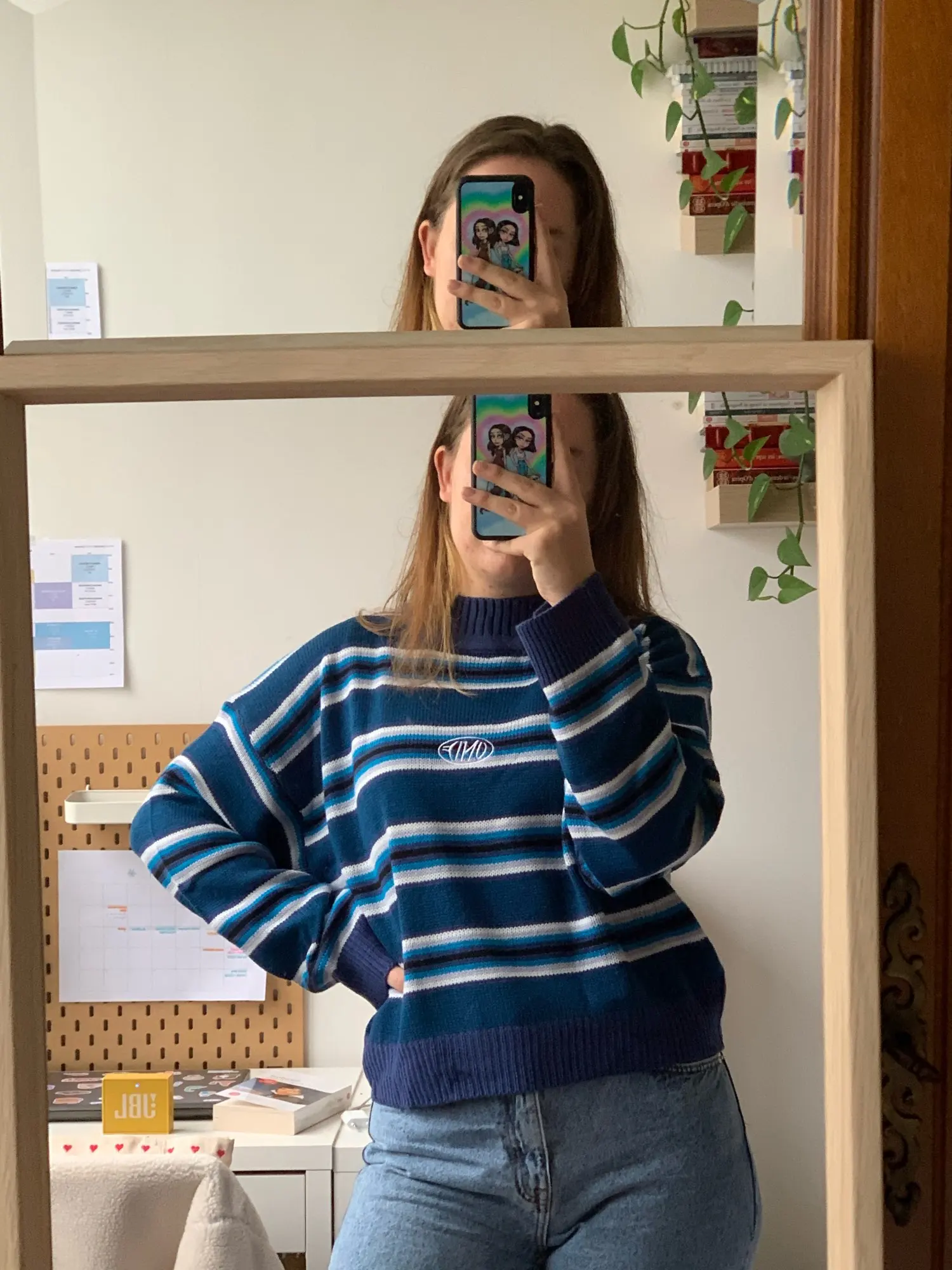 свитер хороший, яркий, был неприятный запах, но после стирки он ушёл. рукава не такие широкие, как на фото, но так даже лучше. я думала, что будет укорочённый, в итоге он средней длины. пришёл примерно за месяц до спб. если что мой рост 162 см