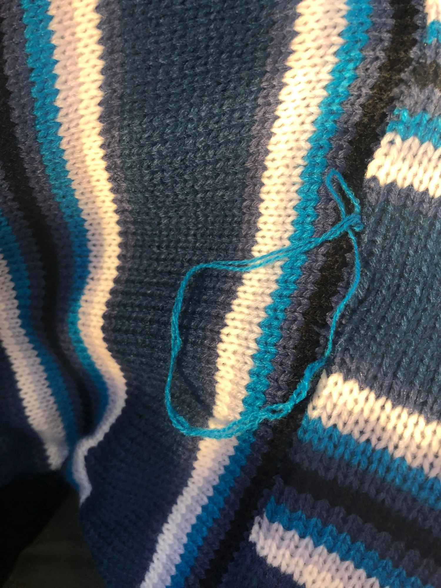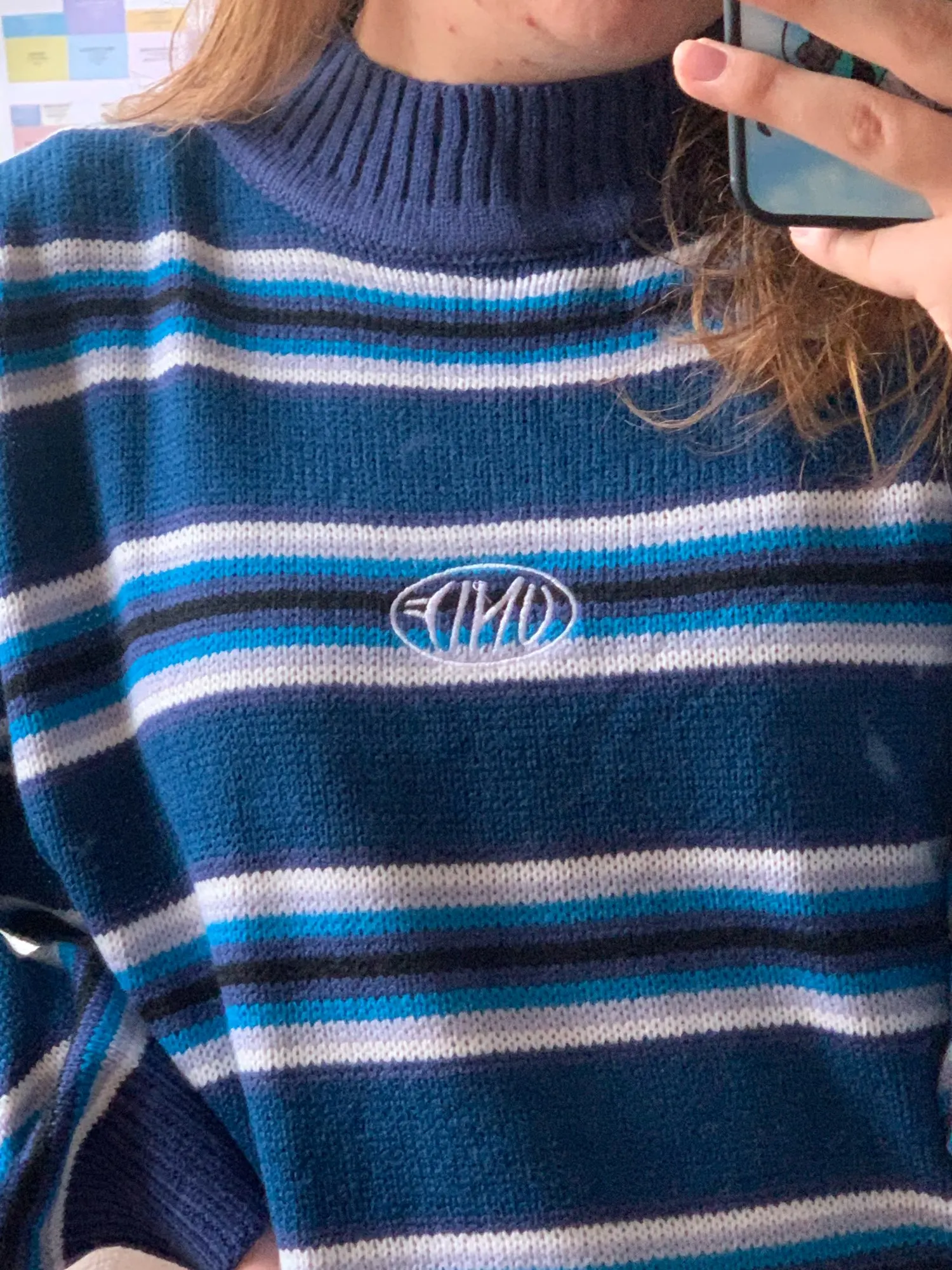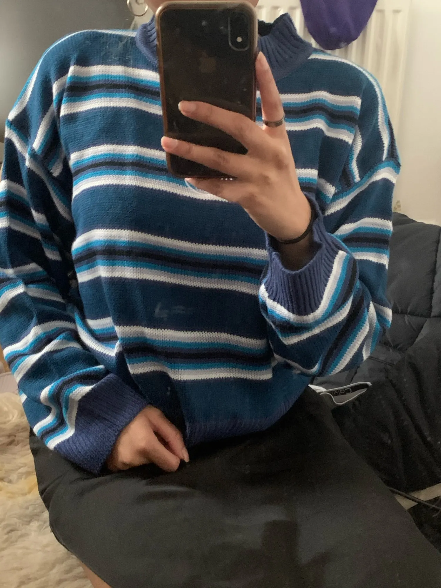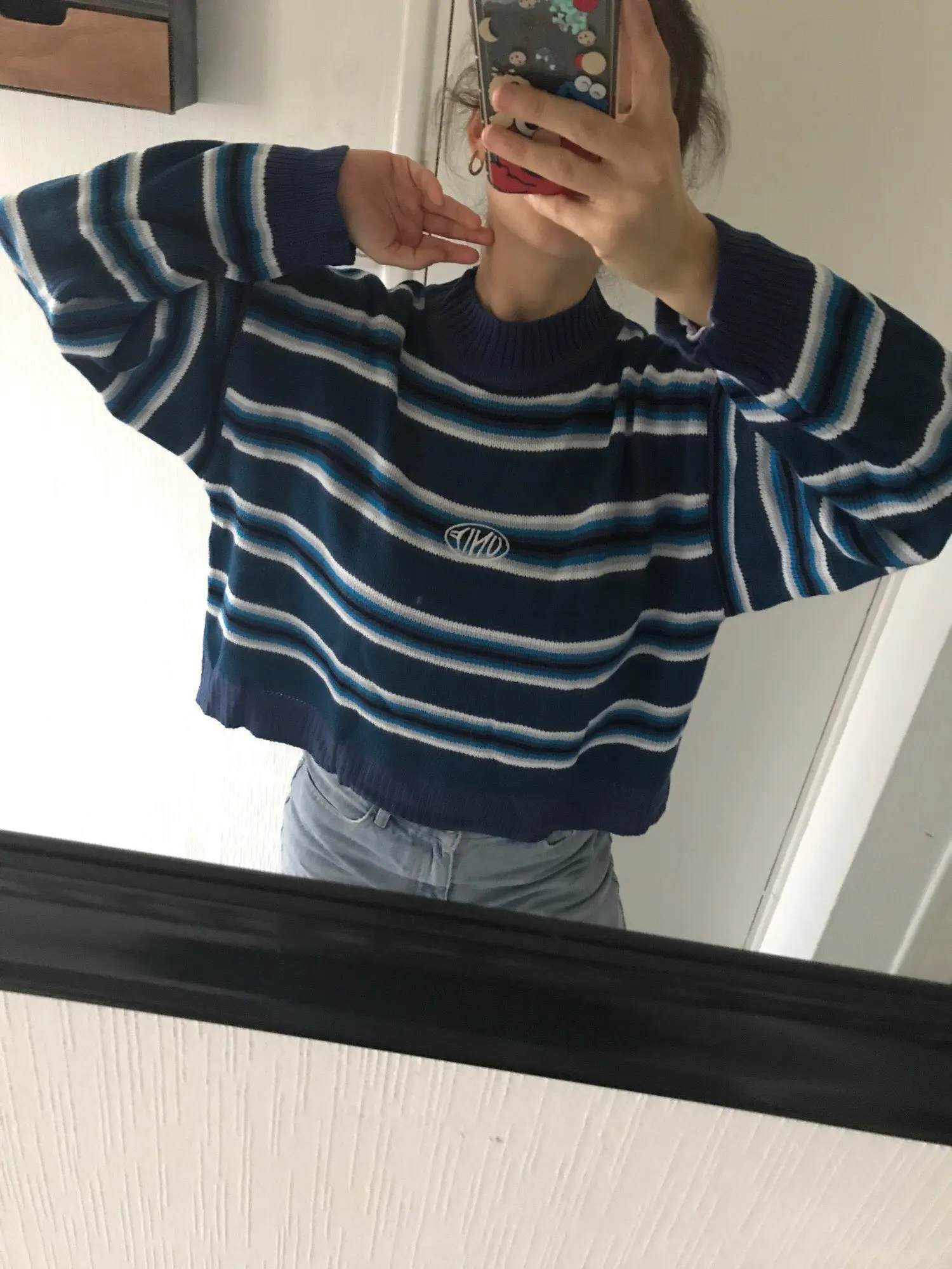 тоненький свитер, отличается от фото цветом - полоски не темно синие, а голубые. в целом, неплохо
