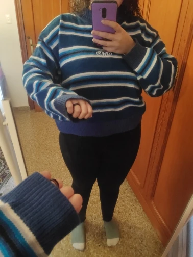 Идеально! Свитер с небольшим запахом, когда он новый, но не очень сильный, он прибыл во Францию через 13 дней, так больше времени, чем ожидалось, но быстро в любом случае. Я измерил 1 М68 на 63 кг, и он идеален! В упаковке был небольшой подарок.
