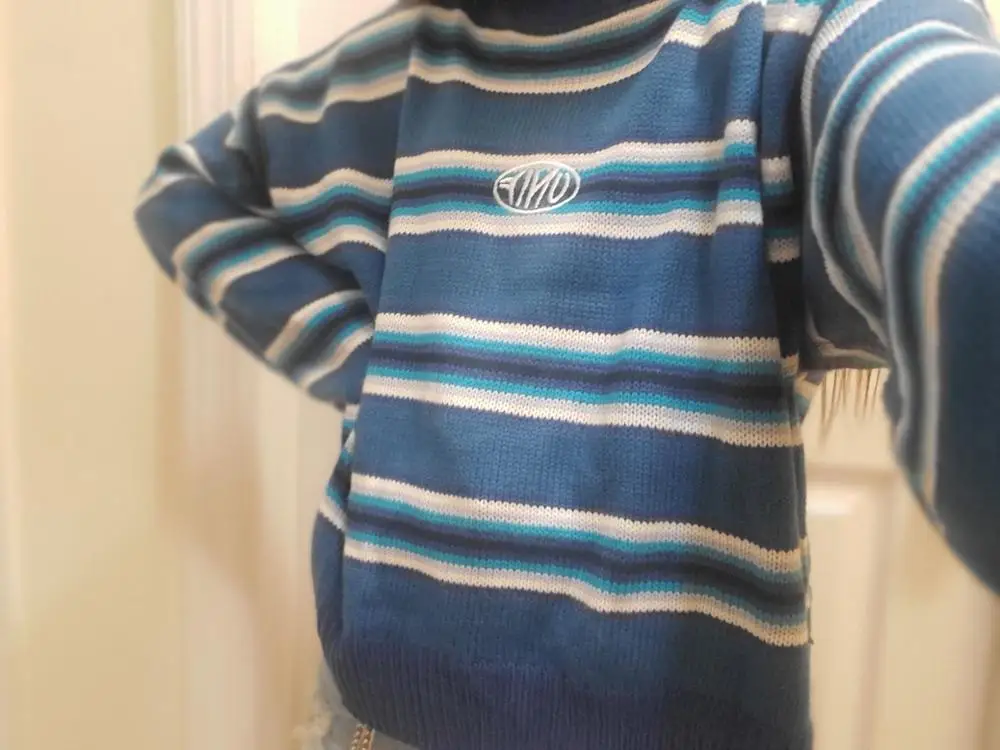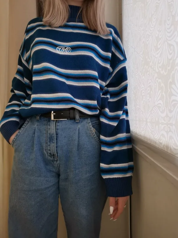 Женский свитер в Корейском стиле, в стиле Харадзюку, свободный, полосатый, для учеников, женский свитер, пуловер, джемпер Kawaii Ulzzang